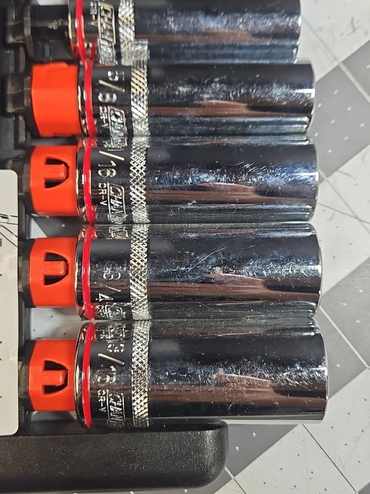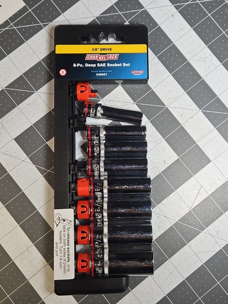 3/8" Drive Deep SAE Channel Lock Socket Set 8pc #346667 GUC 3/8" To 13/16" 6pt Product will be shipped timely and packaged with care. Offers are encouraged. Please feel free to reach out with questions. Please see pictures. Thank you. Good used condition. Light wear from age and use. Markings from age and use. See pictures This set is sold as seen. Gently used. The original manufactured holder has broken pegs and 4 of the 8 sockets do not sit on holder. This product is a 3/8" drive deep SAE Channel Lock Socket Set with 8 pieces. The sockets range in size from 3/8" to 13/16" and have a 6-point configuration. The set includes sockets only, and the brand is Channellock. The manufacturer part number is 346667. This set is suitable for use in the automotive industry and is categorized under eBay Motors, Automotive Tools & Supplies, Hand Tools, and Sockets & Socket Sets. MC1