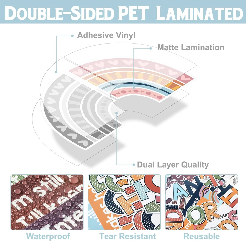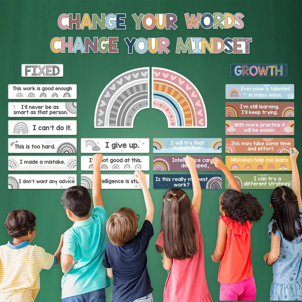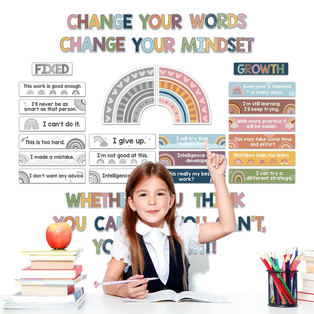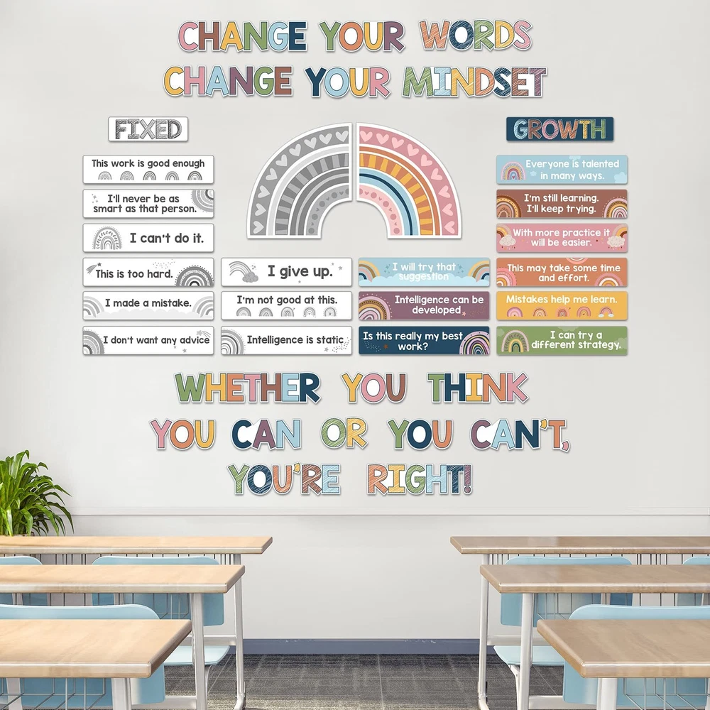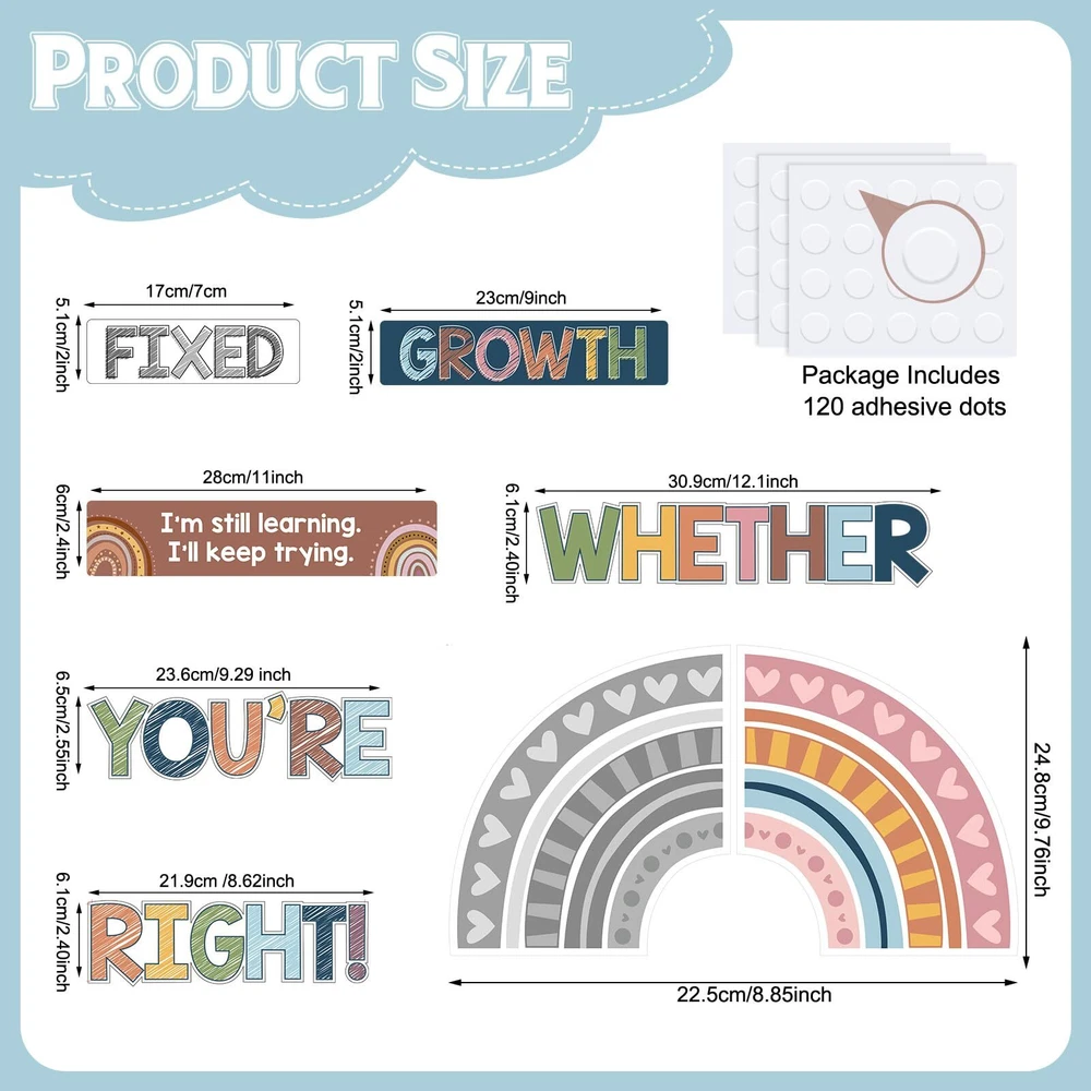 Features: Interesting and eye catching: The grow your mindset mini bulletin boards are designed with colorful words and pictures, come with Boho rainbow style design, very interesting and bright, the text can help to enhance the learning experience. Wide applications: These motivational educational posters are ideal for decorating bulletin boards in the kindergarten classroom, middle school chalkboard, school wall, which can be applied to wall decorations, kids bedroom, nursery room, playroom, living room and more. Educational posters: Many children have a dream to be practical people to society, these classroom posters contain 9 positive attitudes, 9 negative attitudes and have a vivid appearance to help children to understand and build correct ideology. Specifications: Material: 250 gsm cardstock Color: as shown in the picture Size: as shown in the picture Package includes: 38 x Growth mindset posters 120 x Glue points dots Notes: Manual measurement, please allow slight errors on size. The color may exist a slight difference due to different screen displays. Package Includes: 38 pieces of rainbow growth mindset posters with 120 pieces of glue points , size of each positive sayings accents refers to specific pictures; Rainbow inspirational classroom posters feature 9 fixed mindset thoughts and 9 positive attitudes to help children develop a positive mindset, encourage them to challenge difficulties; The rustic wood growth mindset poster for classroom is a good way to remind them to put kids mindsets in check every once in a while Rich in Content Design: each change your words mindset poster helps children increase their curiosity about the world and stimulate positive attitude, appearance and creative imagination; Rainbow positive classroom posters have listed the mentality that needs to be corrected; It's help kids to learn about positive and negative ways of thinking; Positive mindset can help children to change their mindset grow up and help children to understand and build correct ideology, do the right thing Sturdy Material: these positive posters for classroom are made of 250 gsm cardstock, covered with good pet film for adding waterproof, tear resistant and reusable performance; Nice printing technology makes every card vibrant and colorfast, reliable and no odd smell; Motivational posters decorations are nice for preschool, elementary, middle and high school and classroom bulletin board decoration and first day of school decor Easy Way to Mount: the elementary classroom motivational teacher posters pack have no adhesive, so extra glue point are provided in the package; So you can easily apply these positive saying accents on the wall; When you have to move something, it's able to gently pull it off of the wall without messing up wall paint, poster and leaving sticky marks Wide Applications: the growth mindset bulletin board set is suitable for kids bedroom, nursery room, playroom, living room, kindergarten classroom, middle school chalkboard and so on, also can be a proper gift for boys and girls; Motivational growth posters can be applied to wall, hallway, window and back to school decorations, celebrating students' birthday party pendants and photo props, pasting to anywhere you like to decorate your room, bring color and life into your room