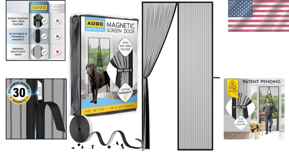 38" x 83" Magnetic Screen Door with Patent Pending Design - Quick & Easy Setup ‹ › ‹ › ‹ › ‹ › ‹ › ‹ › ‹ › ‹ › 38" x 83" Magnetic Screen Door Introducing a revolutionary way to enjoy fresh air without the annoyance of insects! This Magnetic Screen Door features a patent-pending design for a seamless experience. Product Details: Size: 38 inches x 83 inches, fits door sizes up to 36 inches x 82 inches. Perfect for various door types, including sliding doors, patio doors, storm doors, and front doors. Includes hook and loop tape for easy installation, along with extra push pins for added security. Top Features: QUICK INSTALLATION: Effortlessly attach the screen to your door frame and enjoy the outdoors in minutes. BREEZY INSECT PROTECTION: Magnetic sealing mechanism prevents bugs and mosquitoes while allowing fresh air. SECURE DESIGN: Full-length magnets ensure a tight seal, superior to standard screen doors with sparse magnet strips. KID & PET FRIENDLY: Lightweight polyester mesh allows children, small dogs, and cats to pass through easily. PATENT PENDING SNAPS: Keep the screen open during gatherings, clearing the doorway for easy access. Why Choose Our Magnetic Screen Door? Transform your living space into an insect-free haven while enjoying the gentle breeze of nature. Our Magnetic Screen Door is designed with your convenience in mind, providing easy installation and unmatched functionality. The secure magnetic closure and durable mesh material ensure longevity, making it the ideal solution for homes with high traffic. Don’t let insects ruin your outdoor enjoyment. Order your 38" x 83" Magnetic Screen Door today and elevate your living experience with style and ease! Shipping Free & Fast Shipping - We offer free shipping to most of the USA with a normal delivery time of 3-7 days. However, due to the current situation, additional delivery time (up to 3 weeks) may be required for some items. Alternative Carriers - We may use alternative carriers (e.g. USPS, FedEx, UPS, etc.) to ensure your package arrives safely and on time. Due to the use of multiple carriers, we are unable to provide a tracking number automatically. Handling Time - Orders are processed and shipped within 1-2 business days of receiving cleared payment. Shipping Restrictions - Shipping to Alaska, Hawaii, Puerto Rico, Guam, and other US territories may incur shipping charges or delivery restrictions. Please contact us before ordering, or your order can be refunded/cancelled. State Restrictions - There may be restrictions based on your state of purchase. For example, certain items may not be shipped to California due to state regulations. Contact for Tracking Updates - If you require tracking updates or have any concerns about the delivery of your order, please feel free to contact us, and we will be happy to assist you. Return 30-Day Hassle-Free Returns - We want you to be completely satisfied with your purchase. If you are not, you can return the item within 30 days of receiving it for a full refund or exchange. Easy Return Process - To start a return, simply contact us and we will provide you with a prepaid return shipping label and detailed instructions. Restocking Fee - There are no restocking fees for returns. However, the buyer is responsible for return shipping costs if the return is not due to a seller's error. Refund Processing Time - Refunds will be processed within 5 business days of receiving the returned item in its condition. Payment We accept all major credit cards, PayPal, and Apple Pay for your convenience. Your payment information is secure and encrypted to ensure a safe and seamless transaction. Please complete your payment within 3 days of purchase to avoid any delays in shipping. Feedback Your feedback is extremely important to us. We strive to provide the best products and customer service possible. If you are satisfied with your purchase, please take a moment to leave us a positive review. If you have any concerns or issues with your order, please contact us before leaving negative feedback. We are committed to resolving any problems and ensuring your satisfaction. Contact Us If you have any questions or concerns, please feel free to out to our customer support team. You can contact us through the eBay messaging system. We are available Monday to Friday, 9:00 am to 5:00 pm EST, and we will do our best to respond to your inquiry within 24 hours. Buy it now and enjoy a pleasant shopping experience! Unit Quantity: 450 grams Suitable For: Sliding Door,Mosquito Netting for Patio,Storm Door,Front Door Material: Polyester Features: Easy To Install,Self-Sealing,Heavy Duty,Kid Friendly,Pet Friendly,Patent Pending Feature Color: Mesh Type: Screen Door Number in Pack: 1 Item Depth: 0.02 in Item Thickness: 0.1 in Item Weight: 1 lb Unit Type: Unit