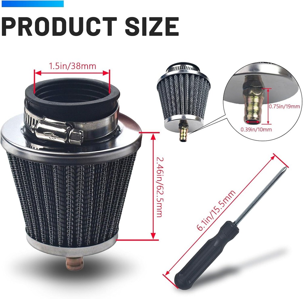 38mm 39mm 40mm Air Filter with Nipple For 50cc QMB139 Moped Scooter ATV Description Fitment: 38mm 39mm 40mm Air Filter with Nipple For 90cc 110cc 125cc Dirt Pit Bike GY6 50cc QMB139 Moped Scooter Off Road Motorcycle ATV Quad XR50 CRF50 CRF70 XR CRF KLX Apollo X RFZ SSR Lifan Dimensions: Inside Diameter: 39mm (1.5inch); Nipple Diameter: 10mm (0.39 inches); Total filter Height including nipple: 96mm (3.8 inches) Product Role: Efficiently filter contaminants, introduce clean air, increase power, torque and horsepower, and improve gas turbine life Wide Application: These universal air intake filter pods are designed and manufactured for a wide variety of applications. Such as motorcycle, ATV, dirt pit bike, go kart and so on. WIll fit most Apollo Dirt Bikes X18 or RFZ models Note: The inside diameter of the motorcycle air filters is 39mm.Please check your carburetor’s mouth outer diameter carefully before your purchasing to choose the right motorcycle pod air filter size. Payment ♡ Paypal, Visa, and MasterCard are the accepted forms of payment. ♡ We only ship the item to your ebay address for fast and accurate shipment. If you want to change the address, please add a note when you make the payment or contact us by E-mail. Shipping ♡ All items will be shipped within 3 business day (except weekends and Holidays). ♡ We offer 30 days money back guarantee on our products, so you can buy with confidence. * If you do not receive your item on time, please contact us immediately for further assistance. Thank you for your understanding. ♡ Please note: * This item does not include a paper manual. If you have any questions during installation, feel free to contact us anytime. * Physical damaged or damage as a result of misuse or improper installation on the buyer/user's part is not covered by warranty. * Items must be returned back to us in original condition with all packaging included. * For all return products, buyers must contact us for the return address with 7 days. About Us ♡ Our products are 100% brand new and high-quality, you can rest assured to buy. ♡ We care about every buyer. So please think carefully before leaving neutral/negative feedback. * Please feel free to contact us via e-mail first should there be any problem with the item you received. Our customer service staff will be happy to help you and reply to your email as soon as possible. ♡ If you have any questions, please leave a message during our working hours: 8:30-17:00 a.m. (GMT + 8) from Monday to Friday. ♡ We will reply to your message within 24-48 hours. * We are sorry for our failure to reply in time on Sundays and holidays. Thank you for your understanding and support! On Jun 16, 2025 at 19:07:10 PDT, seller added the following information: