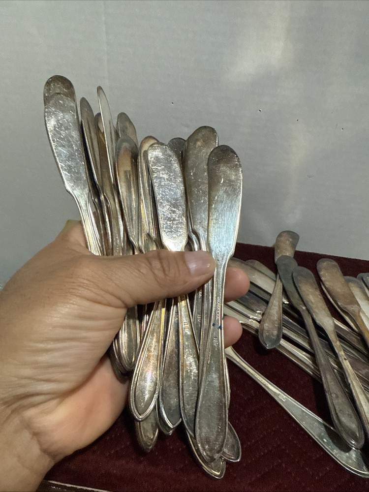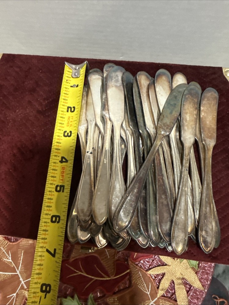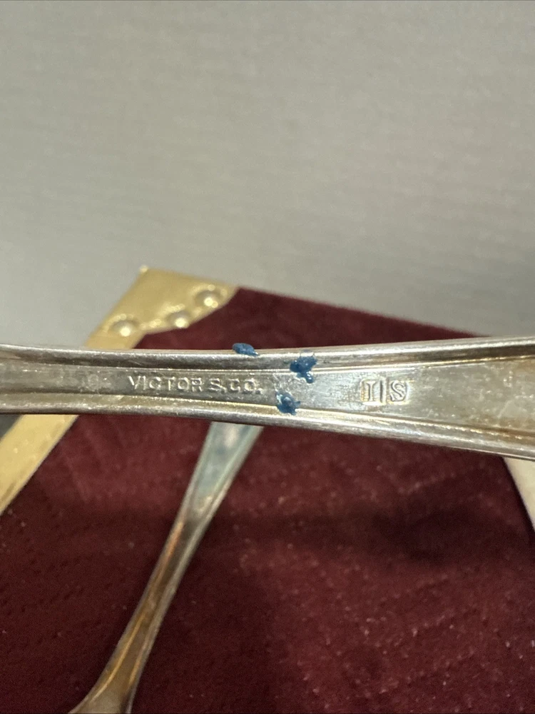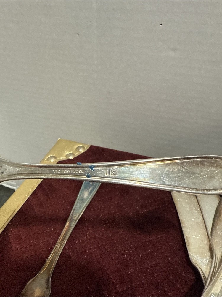 The product is a set of 39 vintage silverware pieces from Victor Co, specifically butter knives made of silverplate. This collection offers a unique and antique charm to any dining table, adding a touch of history and elegance to your meals. Perfect for collectors or those looking to add a touch of vintage flair to their flatware collection, these pieces are sure to impress with their timeless design and high-quality composition. Look at the pictures and ask questions before making your purchase