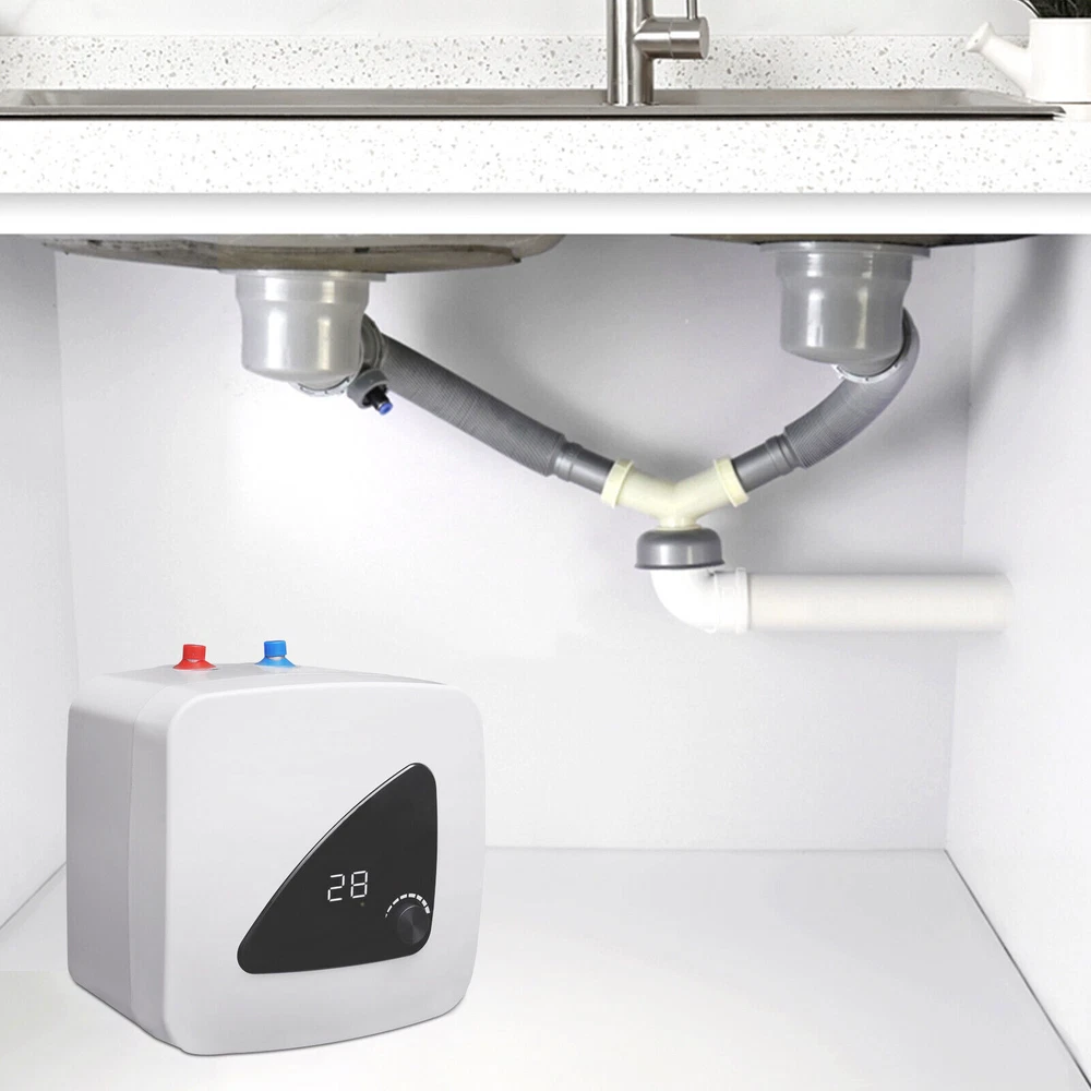 Have a nice day~ 15L Pressure Resistant Undercounter Hot Water Boiler Small Water Heater Description Do you worry about not having enough hot water to wash dishes in winter? Then this top outlet type electric water heater is perfect for you. It can heat the water quickly and has good heat retention. It can also provide you with a constant supply of warm water with automatic refilling so that your winter is no longer cold and you can feel the warmth of your home! Specification Color: White Style: Vertical Type: Water Storage Shell Material: ABS Inner Liner Material: 304 Stainless Steel Heating Tube Material: 316 Stainless Steel Water Inlet Mode: Top Water Inlet Plug Voltage: U.S. Plug 110V Rated Volume: 15L/ 3.96Gal Rated Power: 1500W Rated Water Pressure: 0.75Mpa Applicable Water Pressure: 0.05-0.6MPa Rated Current: 6.8A Waterproof Level: IPX4 Energy Efficiency Level: 3 Heating Time: 8-15 minutes (According to the Different Water Temperature Around) Maximum Temperature: 65℃ Product Size: 34*29*35cm/ 13.38*11.42*13.78in Package Size: 41*35*42cm/ 16.14*13.78*16.54in Net Weight: 6kg/ 13.23lbs Gross Weight: 7kg/ 15.43lbs Package Included 1* Water Heater 1* Pressure Relief Valve 1* Exhaust Pipe 1* Hanger 1* English Operation Manual Other Accessories Needed Key Features Large Volume : It has a capacity of up to 15L/3.96Gal, which can meet your water needs for washing dishes, vegetables, or face, giving you a warmer experience. Adjustable Temperature: It has a maximum water temperature of 65 degrees, and you can adjust the water temperature by turning the front switch knob according to your needs . Short Heating Time: With a power of 1500W, it can heat water in about 8-15 minutes, allowing you to use hot water quickly and save time. Automatic Water Refill: It has the function of automatic water refill so that you can have a constant supply of hot water for your convenience. Good Insulation Effect: It adopts 360° overall high-density pressurized foam technology, which can provide lasting insulation for the internal water and let you enjoy hot water at any time without frequent heating! High Security: It has a three-stage power failure protection device, which can provide double-sided protection against high temperature and leakage, allowing you to use it more safely and securely. Small Footprint: Its modest size(13.38*11.42*13.78in) allows you to place it directly under the sink without taking up too much space in your kitchen. Customer-friendly: It distinguishes the inlet and outlet with different colors: red hot water outlet and blue cold water inlet to make your installation more convenient. Great Durability: This water heater is made of ABS and stainless steel with good sealing and high strength, so it has good water resistance up to IPX4 rating, heat and corrosion resistance , so you can use it for a long time. Customer Service: We aim to provide quality products and services. If you have any problems, please free to contact us. We will reply and solve the problem for you as soon as possible. Details Indicator Light: When the machine is in insulation condition, it will light up a green light, so you can be sure that the water you use is already warm. Temperature Knob: The knob-type temperature control makes it easier and more convenient for you to operate. Temperature Display: It can display the water temperature so as not to make you or your family scalded due to high water temperature, providing security for your use. Application It can be installed in the kitchen, lounge, bathroom, or anywhere else you wish to choose, providing you with hot water up to 65°C. Notes It is recommended to install it under the water basin. Please make sure there is reliable power within the range where it is installed. And install the anti-electricity wall at the red hot water outlet and the pressure relief valve at the blue cold water inlet. Please ensure that the tap water pressure in the installation place is 0.1Mpa, the faucet is a hot and cold type faucet, the power socket is a three-plug power socket, and the drop between the installation location of the water tower and the water tower should be more than 16ft. Please do not install the machine upside down, sideways, or backward, because if the water is not enough to fill, the machine will lead to burnout. When installing it for the first time, please fill it with water and then energize it to avoid burning the heating tube. Please do not use it when the water is off. Please allow the slight color difference caused by the shooting light and 1-3cm error due to manual measurement, and make sure you do not mind before ordering. Notes: Do not use an electric water heater when the water pipe freezes, otherwise it may damage the product. Payment Delivery details Terms of sales About us Contact us Payment We accept ebay payment 。 Fees such as import duties, taxes are not included in the item price or shipping costs. These charges are the buyer's responsibility. Delivery details Shipping: 2-9 working days to: USA Terms of sales We maintain high standards of excellence and strive for hundred percent customer satisfaction. Feedback is very important to us. We hope that you contact us immediately before you give neutral or negative feedback, so that we can address your concerns. It is impossible to address issues if we do not know about them! About us Your satis faction is our ultimate goal. We work hard to earn your trust and future business. Our certified technicians have tested each item before shipping. The unit comes with 1 year limited warranty on all manufacturing defects. a) If you receive a defective item, you may return it or ask for a discount. Please contact us within 14 days after you receive the package. b) What you returned must be intact and in its original packaging as re? u. Customer is responsible for shipping costs of the returned item. c) We will cover the cost of shipping back t with the shipping rate indicated in the registration page.