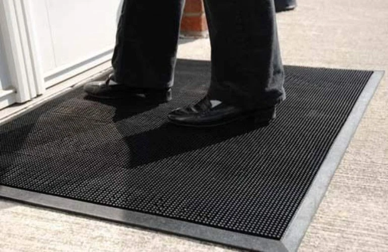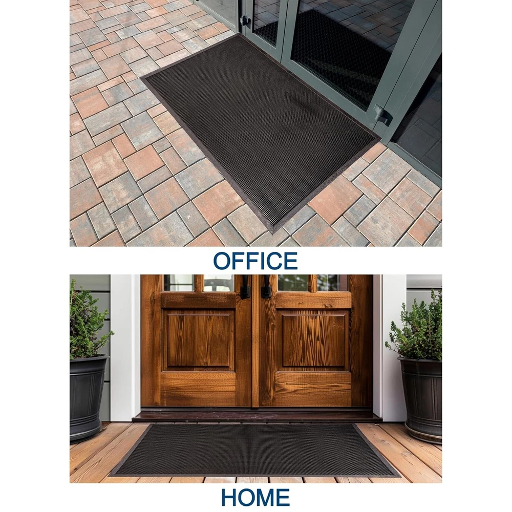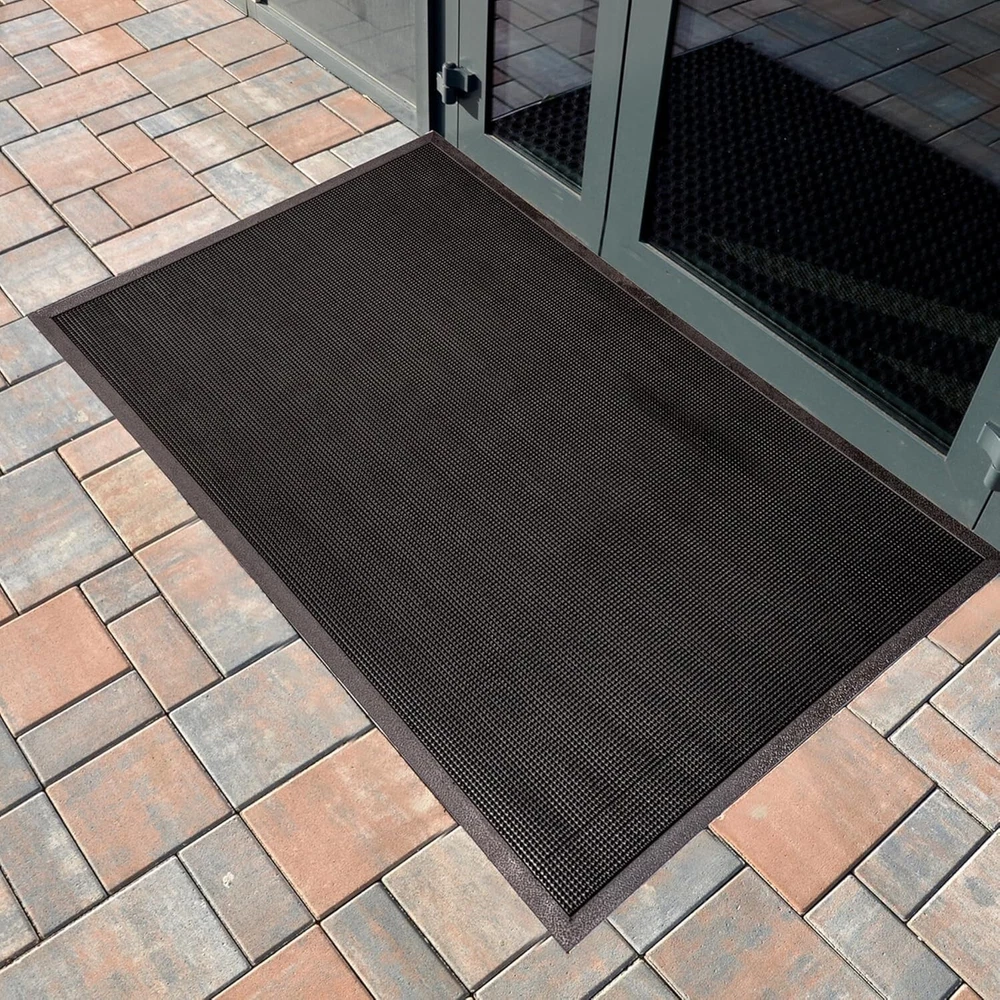 396S3672 Heavy Duty Rubber Fingertip Outdoor Entrance Mat, 36" x 72", Black Fingertips wipe off dirt and moisture from footwear Door mat helps trap dirt below the walking surface; Shake, vacuum or hose to clean Corrugated pattern on the bottom of doormat helps prevent mat movement All four sides have beveled edging to improve safety at the facility entrance 36" Width x 72" Length x 5/8" Thickness The Fingertip Mats brushing action of thousands of resilient rubber fingertips wipe off dirt and moisture from footwear. Dirt is trapped out of sight below the walking surface. Corrugated pattern on the bottom helps prevent mat movement. All four sides have beveled edging to improve safety at the facility entrance. Shake, vacuum or hose to clean.