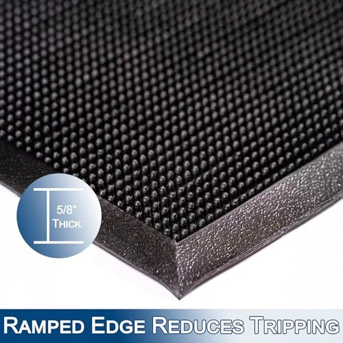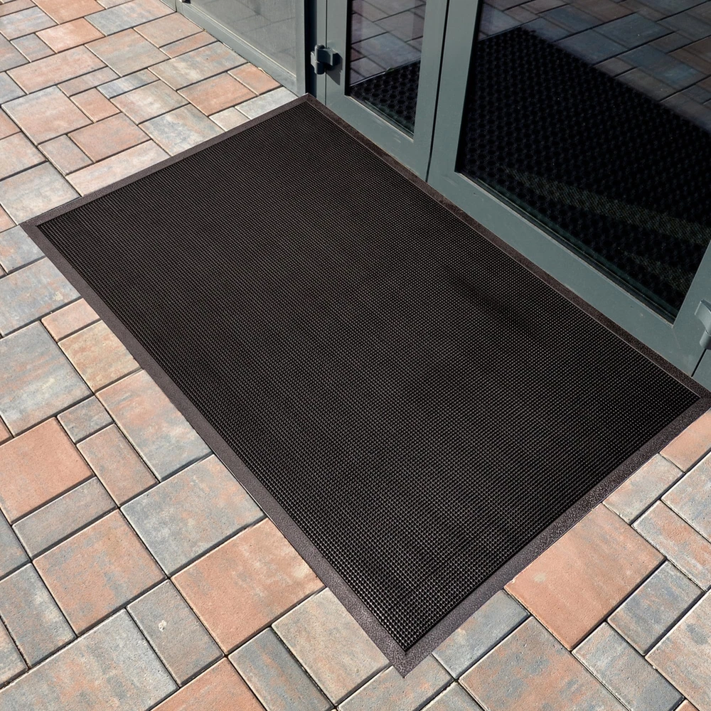 The Fingertip Mats brushing action of thousands of resilient rubber fingertips wipe off dirt and moisture from footwear. Dirt is trapped out of sight below the walking surface. Corrugated pattern on the bottom helps prevent mat movement. All four sides have beveled edging to improve safety at the facility entrance. Shake, vacuum or hose to clean. Fingertips wipe off dirt and moisture from footwear Door mat helps trap dirt below the walking surface; Shake, vacuum or hose to clean Corrugated pattern on the bottom of doormat helps prevent mat movement All four sides have beveled edging to improve safety at the facility entrance 36" Width x 72" Length x 5/8" Thickness