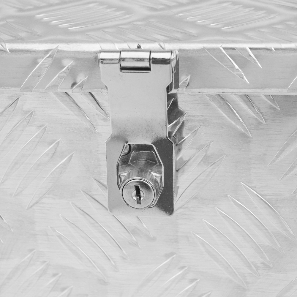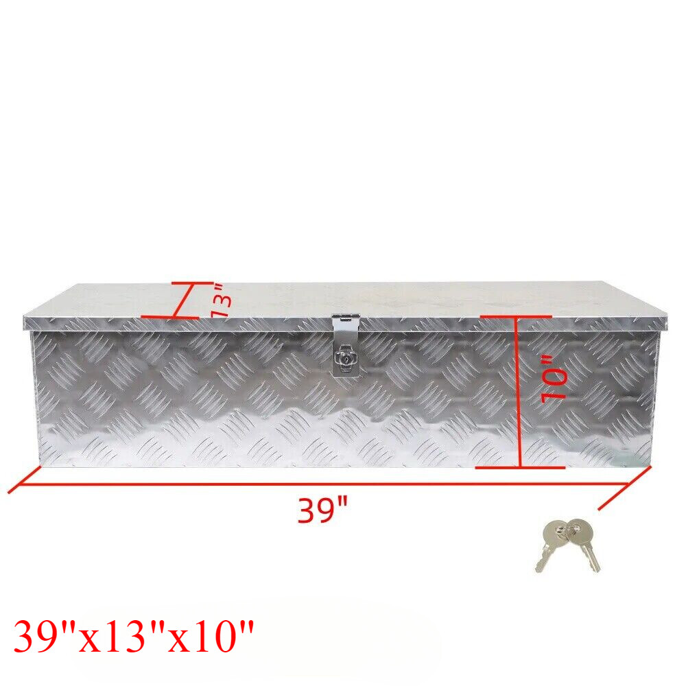 Material: Aluminum Universal Fitment: Yes Color: Silver UPC: Does not apply Finish: Polished, 5 Bar Tread Features: Locking, Weather-Resistant Overall Dimensions: 39"(L) x 13"(W) x 10"(H) Placement on Vehicle: Front, Left, Lower, Rear, Right, Upper Item Width: 13 in Item Height: 10 in Type: Truck Tool Box Item Length: 39 in Manufacturer Warranty: Lifetime Brand: SREHLOE Placement: Trailer Pickup Truck Bed,Underbody gtin13: Does not apply
