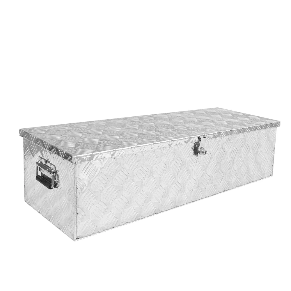 39" Aluminum Truck Pickup Tool Box Trailer Underbody Toolbox Storage W / Lock Specifications: 1.100% Brand New,Never been tried or installed 2. Material: Aluminum 3. Product Dimensions: (39 x 13 x 10) / (99 x 33 x 25)cm (L x W x H) 4. Tread: 5 Bar Tread 5. Weight: 8.2kg 6. Position: Trailer Pickup Truck Bed, Underbody 7. Color: Silver Package Includes: 1 x Aluminum Tool Box 2 x Keys Features: 1. This tool box is designed to save space and provide extra storage by conveniently mounts under your vehicle 2. Perfect for tools storage in your vehicle or in your garage/home 3. Heavy duty aluminum tread plate 4. Portable case, lightweight for easy carrying 5. Perfect as an all-purpose storage, this item is a must have for families 6. Equipped with two keys for locking SHIPPING: DOMESTIC LOWER 48 US STATES: FREE VERY IMPORTANT: Double check shipping address. We are not responsible for incorrect or undeliverable addresses. Product will be shipped within 1 business days after full payment is received and verified. Delivery Time is about 3-7 business days to most of countries. We ship the package to your shipping address in eBay instead of the one in PayPal. Please tell us your shipping address if it is different from the one in eBay. The tracking number will be given for the customer to check the shipping status online (registered or faster service only). We are not responsible for any wrong or undeliverable addresses. Please verify and update your shipping address on eBay during checkout. PAYMENT: Item will be shipped out within 24 hours after payment cleared, except for weekends and holidays. RETURN: 30 Days Free Returns, please notify us within 30 days after you've received your order. Please email us or call us to obtain a RMA (Return Merchandise Authorization) number from us, and have the RMA number written on the return package. Items to be returned must be in resalable condition. All returns are for refund ONLY. No exchange accepted. TERM & CONDITION: For emissions related items, please check with your local jurisdiction for emission specific requirements before purchasing. All items do not come with installation instruction unless otherwise specified. If item is questionable, please consult your local professional/mechanic before making purchase. Please leave us POSITIVE FEEDBACK and 5 stars DSR if you are happy with the transaction.