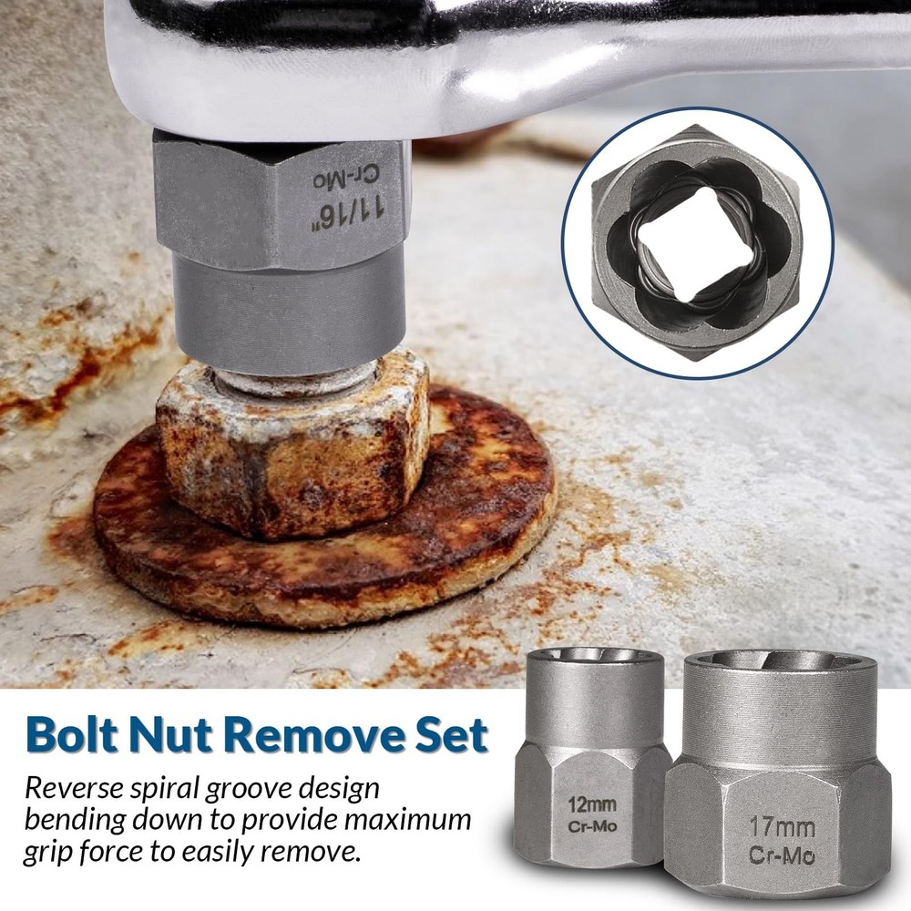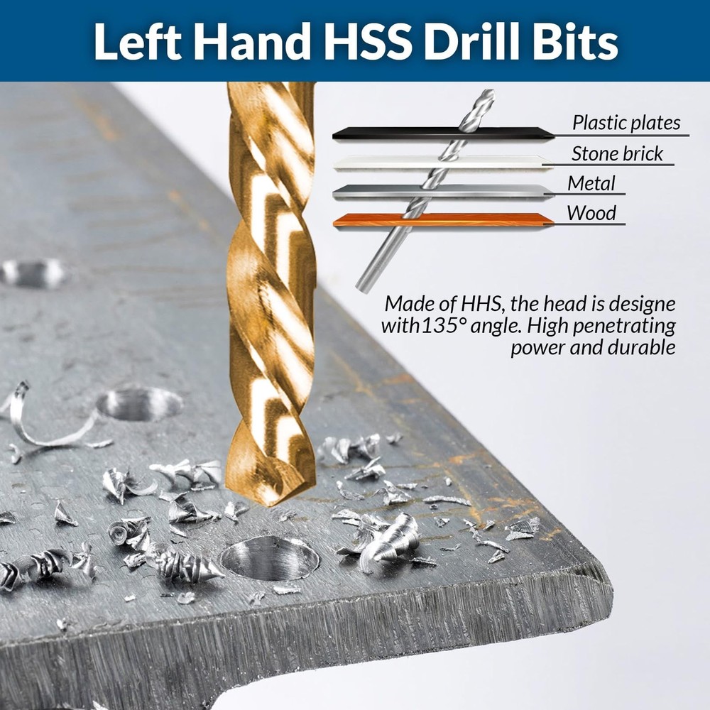 Introducing our ultimate solution for effortless extraction: the 39pc bolt extractor kit. With this versatile toolkit at your disposal, you'll conquer any extraction challenge with ease. Our comprehensive screw extractor kit includes extractor bits for removing peeling bolts, broken nuts, round screws, and frozen lug nuts, ensuring you're always prepared for any maintenance task. Crafted from high-hardness chrome-molybdenum steel and high-speed steel, our broken bolt extractor kit deliver unbeatable durability, double the hardness of traditional bolt extractor set. The reverse spiral groove design provides maximum grip force, while the surface titanium nitride coating prevents corrosion and rust, extending the extractor drill bits' service life. Plus, our bolt screw extractor features a 2-in-1 function with a 3/8 inch drive for direct connection with a wrench, eliminating the need for a socket. Whether you're working on cars, bikes, boats, trucks, or SUVs, our stripped bolt remover is your reliable partner for quick and efficient extraction. With additional left-handed design and versatile accessories, including drill bits and nut removers, our left hand drill bits offers unmatched versatility and convenience. Keep all your extractors organized on-the-go with the compact, heavy-duty blow mold case, ensuring you're always ready to tackle any project. Upgrade your toolkit today and experience the difference with stripped screw remover. π End Your Frustration with Stubborn Fasteners: Don't let stripped or damaged fasteners hold you back. Upgrade to the Damaged Screw Extractor Set & Bolt Extractor Set and conquer every extraction challenge with ease π Extensive Size Range: Unlike traditional sets that offer limited sizes, our comprehensive range covers from 2mm to 21mm, providing you with the perfect extractor for various applications. No more struggling with damaged, frozen, rusted, or rounded-off bolts, nuts, and screws! π Superior Durability: Crafted from high hardness chrome-molybdenum steel and high-speed steel 6542 with a maximum Rockwell hardness of 68 HRC, our extractors deliver unbeatable durability. With double the hardness of HSS 4341, they are built to handle the toughest jobs!s deliver unbeatable durability. π Versatile Accessories: Your toolkit includes 13 pcs mumlti-spline bolt extractor,10 pcs hex head mumlti-spline extractor set,10 pcs left-hand cobalt drill bits,5 pcs easy out screw extractor set and 1left-hand cobalt drill bits. π Organized On-the-Go: Keep all the extractors neat and tidy with the compact, heavy-duty blow mold case. It's designed for convenient storage and portability, so you can take your set anywhere you need it.