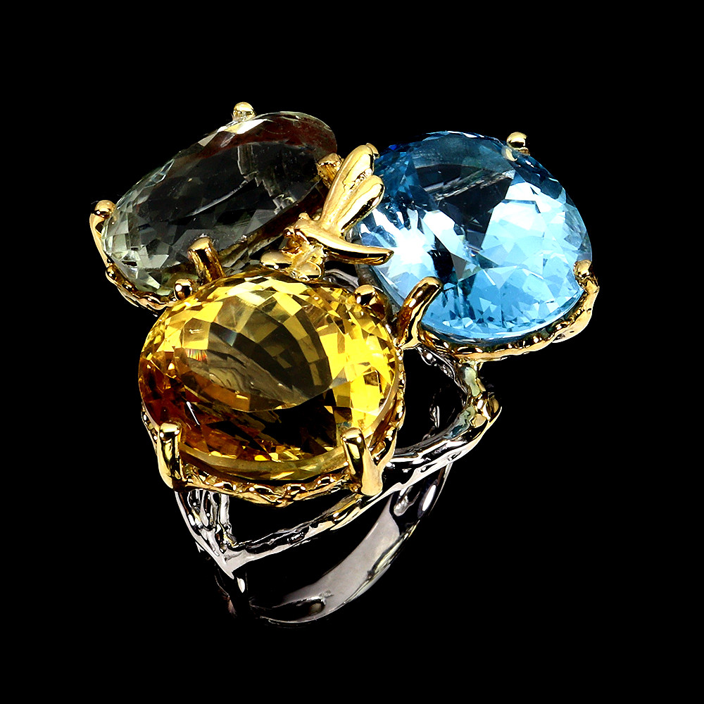 Type: Ring Metal: Sterling Silver Number of Diamonds: 1 Ring Size: 9 Setting Style: Cluster Handmade: Yes UPC: Does not apply Main Stone Treatment: Irradiated Main Stone Color: Top Sky Blue Metal Purity: 925 Dimension: 17X12 Main Stone Width: 12 mm Material: Gemstone Shape: Oval Diamond Color Grade: D Style: Cocktail Brand: Egemdiamond gtin13: Does not apply Theme: Fashion & Costumes Base Metal: Sterling Silver Features: Nickel-Free Total Carat Weight: 15.71 gram Country of Origin: Africa MPN: Does not apply Color: Multi-Color Cut Grade: Excellent Country/Region of Manufacture: Thailand Hardness: 8 Occasion: Birthday Main Stone Shape: Oval Cut Plate: 2-Tone White & Yellow 14k Gold Product ID: RG2502150225 Main Stone: Sky Blue Topaz Main Stone Length: 17 mm Number of Gemstones: 1 Main Stone Creation: Natural Secondary Stone: Citrine, Green Amethyst