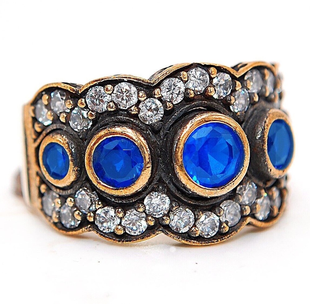 3CT Ottoman Empire Inspired Treated Sapphire 925 Sterling Silver Ring Size 8