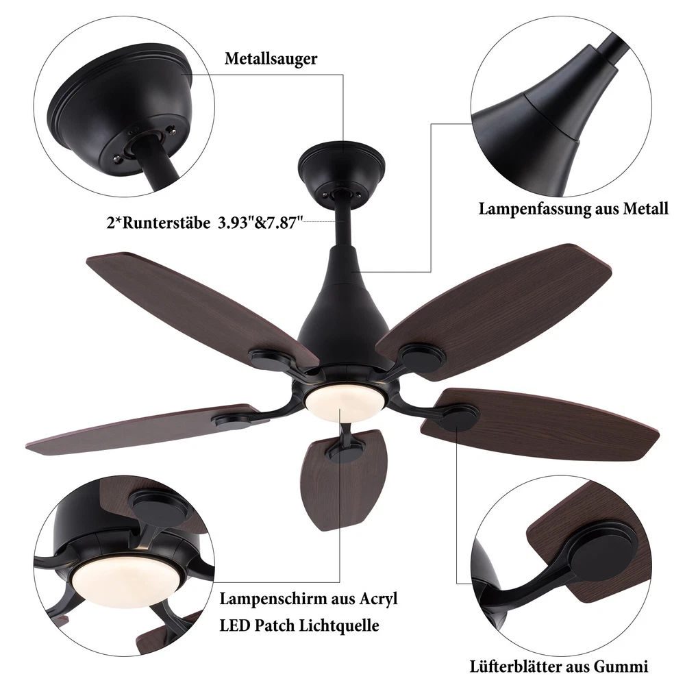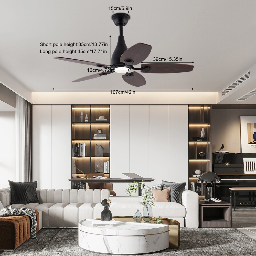 3-Color Ceiling Fan Light With LED Light Ceiling Fan With Remote Control Timing Description Fan or chandelier? This is too difficult to make a decision. Now, you don't have to choose because our ceiling fan light has combined the two. The combination of high-quality materials and exquisite craftsmanship makes it sturdy and durable. Fan speed and time-setting can be easily adjusted by remote control, providing you with a smarter and more convenient life. With its stylish appearance, it can better decorate your room! Key Features Sturdy and Durable: The iron with a painting process makes it sturdy and resistant to impact, deformation, corrosion, and rust, ensuring an extended service life. Excellent Light Source: The environment-friendly and energy-saving LED light with variable light colors ( warm, cold, neutral ) and color temperature ( 3000-4500-6000K ) can effectively avoid glare and stroboscopic, protect your eyes, restore the most authentic color of objects, and meet your different needs. Two-way Rotation: The normal mode of the fan can bring coolness in summer. You can also reverse the direction of the fan in winter, blowing hot air from the top into the room and increasing the indoor temperature. Healthy and Energy-saving: The ceiling fan light provides more comprehensive air circulation and cooling, thereby reducing the frequency and time of air conditioning use, saving energy, and reducing expenses. It can avoid direct blowing and reduce the risk of air conditioning diseases. Low Noise: The pure copper motor makes the product operate at a noise level of approximately 35dB, which is as quiet as a soft-speaking voice. This allows you to enjoy a peaceful and quiet environment. Smart Control: You can set the timing function(1/2/4/8H) to have a comfortable sleeping environment and the 6-speed wind speed to experience the refreshing breeze or strong coolness through the convenient remote control, simplifying your daily routine and enhancing your overall living experience. Multiple Functions: This item integrates lighting and a fan, illuminating the space while balancing room temperature, and meeting your usage needs. Ideal Gift: With its beautiful appearance and powerful functions, you can give it as a housewarming or holiday gift to your friends, family, or colleagues. Easy to Clean: Thanks to the simple structure and smooth surface, you can easily wipe it clean with a rag. High Applicability: The wide voltage range of 85-265V can adapt to the voltage needs of most households, so you can use it with confidence . Details Stable Base: The 5.9" thickened and enlarged base ensures stronger load-bearing capacity and stability. Closed Shade: The closed shade effectively prevents impurities, etc. from entering and its high light transmission provides good lighting for your house. Upgraded Blades: 5 fan blades adopt an aerodynamic design, providing a stable and powerful air supply with low noise. Selectable Suspension Rods: The 3.93" and 7.87" suspension rods provide you with the flexibility to install this ceiling fan light according to your needs. Application With a lighting area of 107.64-161.46ft². It is ideal for the living room, dining room, hotel, club, restaurant, kitchen, study, bedroom, meeting room, etc. Specification Material: Iron Process: Painting Color: Black , Dark Brown Style: Modern Shape: Round Motor Type: Pure Copper Motor Indoor/Outdoor Usage: Indoor Mount Type: Ceiling Mount Control Mode: Remote Control Number of Fan Blades: 5 Light Color: Neutral, Cold, Warm Light Efficiency: E Light Source: LED(Included) Voltage: 85-265V Power: 45W Noise: 35dB Timing: 1/2/4/8H Number of Gears: 6 Battery Type: 2 * AAA Batteries(Included) Remote Control Distance: 3-5m/9.84-16.4ft Color Temperature: 3000K, 4500K, 6000K Lighting Area: 10-15m²/ 107.64-161.46ft² Pole Length: 10cm/3.93in or 20cm/7.87in Lampshade Diameter: 12cm/4.72in Fan Blade Length: 39cm/15.35in Base Diameter: 15cm/5.9in Product Overall Diameter: 107cm/42in Product Overall Height: 35cm/13.77in or 45cm/17.71in Package Included 1* Ceiling Fan Light 1* Remote Control 1* English Manual Other Accessories for Assembly Notes Please make sure that the size of the ceiling fan matches your room and carefully make a choice. Please make sure the power is cut off before installation and when you clean the light. The surface of the product and the electric wire should avoid scratching when mounting, and electric insulation gloves(not included) must be worn when installing. To ensure your safety, professional ones with an electric license are recommended to carry out the installation if possible. Please read the English manual carefully before use, and pay special attention to the safety tips inside. Please do not bend the blades when calibrating and cleaning the fan. Please allow the slight color difference caused by the shooting light and 1-3cm error due to manual measurement, and make sure you do not mind before ordering. Payment Delivery details Terms of sales About us Contact us Payment We accept ebay payment 。 Fees such as import duties, taxes are not included in the item price or shipping costs. These charges are the buyer's responsibility. Delivery details Shipping: 2-9 working days to: USA Terms of sales We maintain high standards of excellence and strive for hundred percent customer satisfaction. Feedback is very important to us. We hope that you contact us immediately before you give neutral or negative feedback, so that we can address your concerns. It is impossible to address issues if we do not know about them! About us Your satis faction is our ultimate goal. We work hard to earn your trust and future business. Our certified technicians have tested each item before shipping. The unit comes with 1 year limited warranty on all manufacturing defects. a) If you receive a defective item, you may return it or ask for a discount. Please contact us within 14 days after you receive the package. b) What you returned must be inta