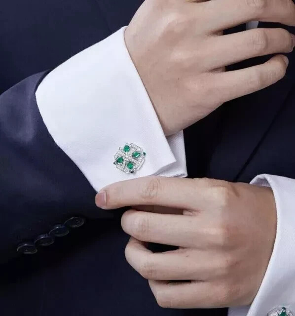 $ 88.7114K White Gold Plated 4Ct Cushion Cut Lab Created Black Diamond Men's Cufflinks