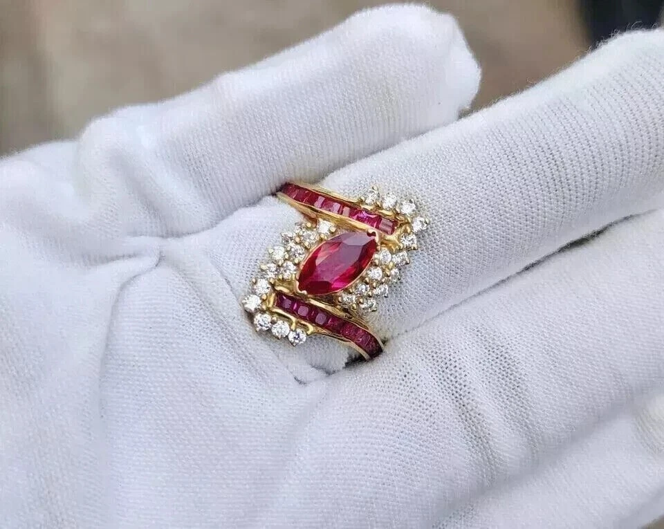 3Ct Marquise Cut Simulated Ruby Women's Wedding Ring In 14K Yellow Gold Plated