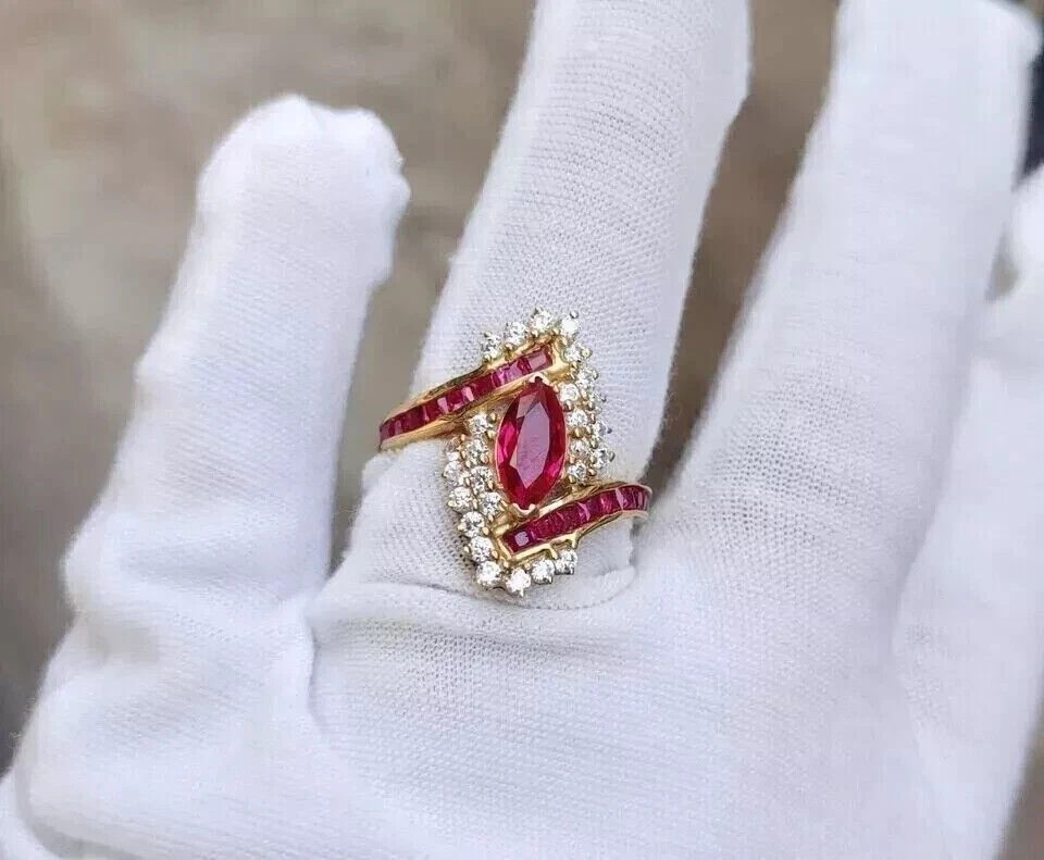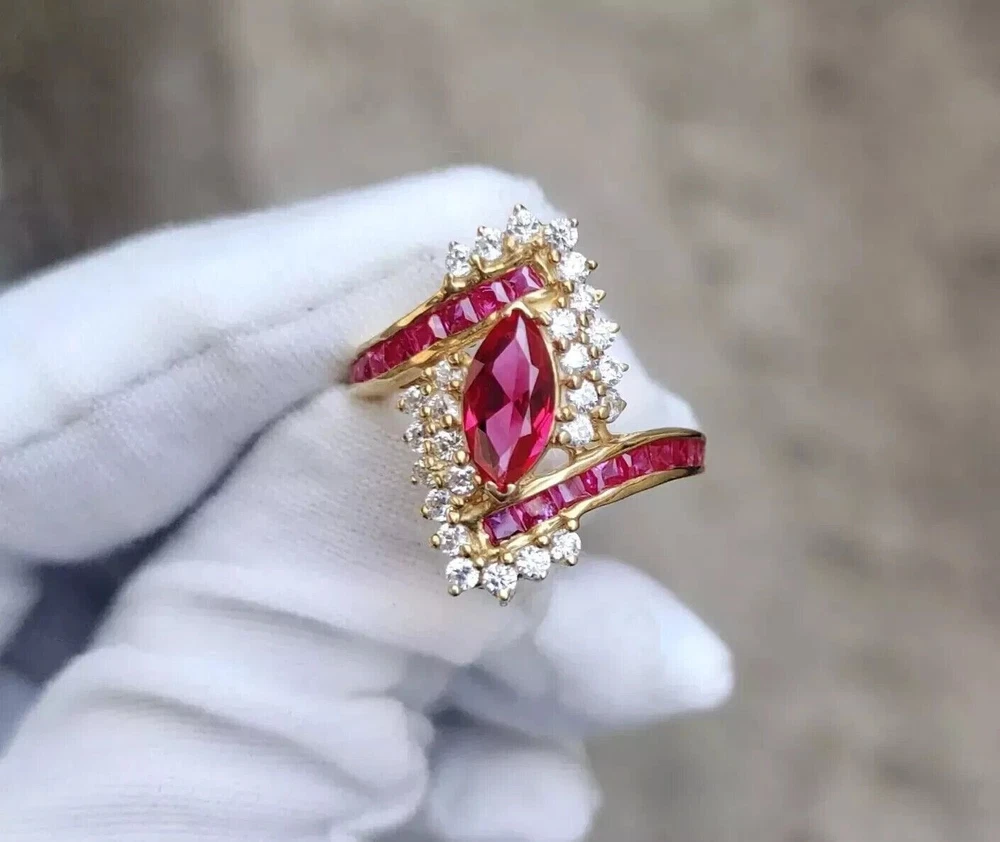 Country/Region of Manufacture: India Occasion: Anniversary, Birthday, Christmas, Engagement, Father's Day, Graduation, Mother's Day, Valentine's Day, Wedding Antique: No Type: Ring Style: Band, Eternity Color: Yellow Main Stone Shape: Marquise Metal: Sterling Silver Sizable: Yes Seller Warranty: Yes gtin13: Does Not Apply Main Stone: Simulated Ruby Ring Size: All Size Available Secondary Stone: Simulated Diamond Metal Purity: 925 Cut Grade: Excellent Signed: No Shape: Round Vintage: No Base Metal: Yellow Gold Plated Customized: Yes MPN: NA Material: Gemstone, Stone, metal Main Stone Creation: Simulated UPC: Does Not Apply Country of Origin: Unknown Personalize: Yes Handmade: Yes Number of Gemstones: Multi Setting Style: Prong Gemstone Clarity Grade: Slightly Included Features: Engraved Brand: sp_jewels Main Stone Color: Pink Theme: Beauty Era: Undated Personalization Instructions: As per your requirement we can change the over layer color Wholesale: Yes