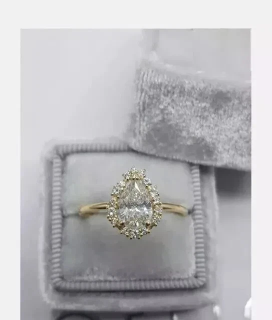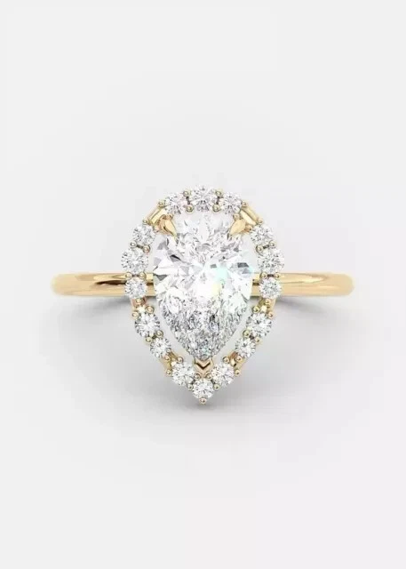 3Ct Pear Cut Simulated Diamond Halo Engagement Ring 14K Yellow Gold Plated