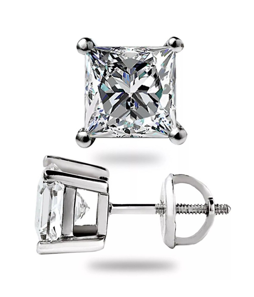 3.00 Carat Princess Brilliant Cut Solitaire Stud Screw Back Basket Earrings in 14K White Gold Value $395.00 These exquisite lab created white sapphire stud ear rings are crafted out of 14K White Gold and brilliant stud earrings. This design of stud earrings is one of the most desired and classy of all. They are set in a unique, secure, 4-prong designer style setting. They emit every shade of light that a natural diamond would emit. The radiance and fire of these stud earrings is equivalent if not superior to a natural diamond of a FL Clarity, D Color, Excellent Cut. Brand --> Hallmark Clearance Total Carat Weight (TCW) --> 3 .00 Carats (1.50 Ct. Approx. 7mm Each) Metal --> 14K White Gold Stud Type --> Lab Created / White Sapphire Top Quality Item. Design --> Studs Main Stone Shape --> Princess Cut Color --> D Clarity --> FL Setting --> 4-Prong Designer Style Type of Post or Back --> Screw Back Number of Stones --> 2 Country of Manufacture --> United States America Origin of Stones --> Lab Created White Sapphire Availability --> Limited Quantity So What Will I Be Receiving in the Mail? A Pair of 14K White Gold Round Brilliant Cut Stud Earrings . An Elegant and Luxury Jewelry Box REFUNDS We guarantee your satisfaction and offer a 30-day money-back return (or exchange) policy. If for ANY reason you are unsatisfied with your purchase, please contact us first before opening up a case or leaving negative/neutral feedback so that we could make things right! We are here to help YOU!