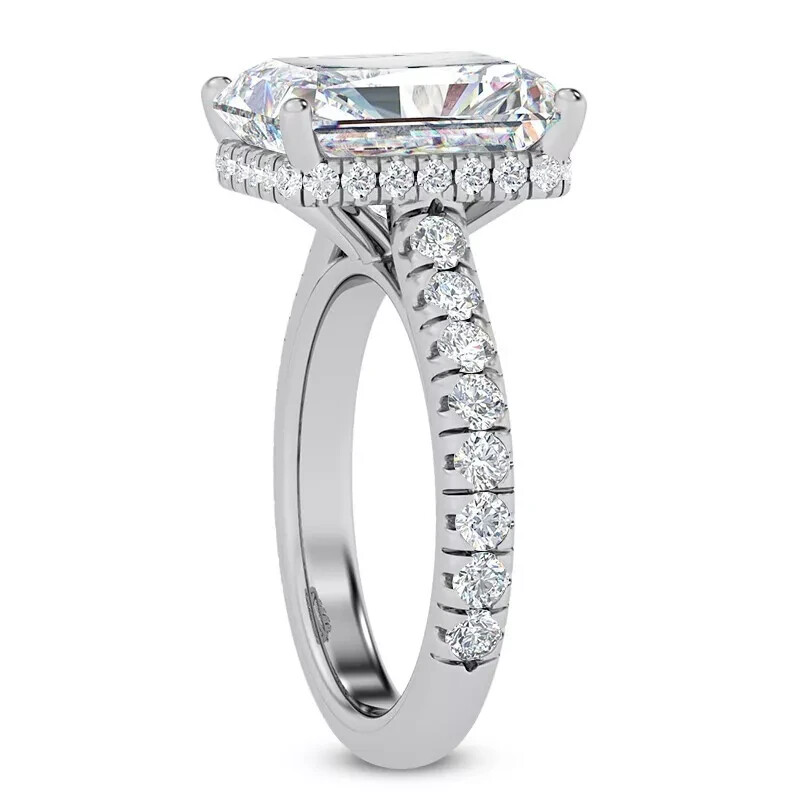 $ 46.4614k White Gold Plated 3Ct Radiant Cut Natural Moissanite Women Engagement Ring