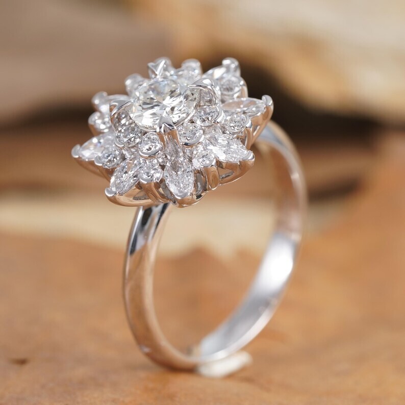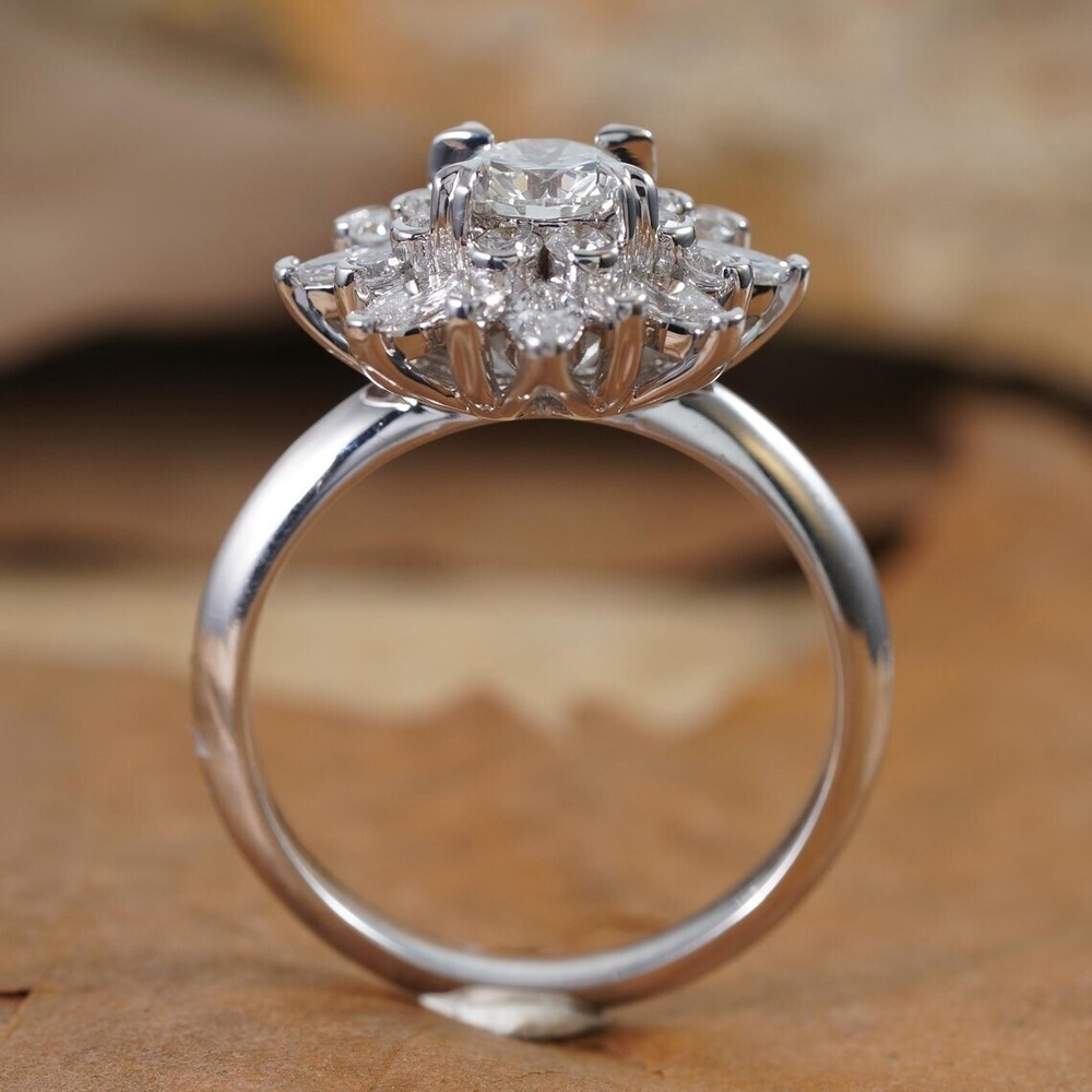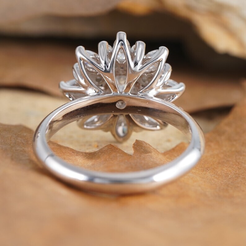 3Ct Round Cut Natural Moissanite Women's Sunflower Ring 14k White Gold Plated