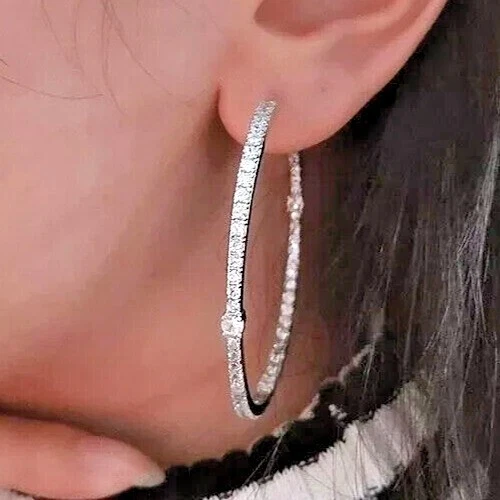 3Ct Round Cut Simulated Diamond Women's Hoop Earrings In 14k White Gold Plated