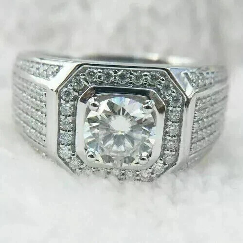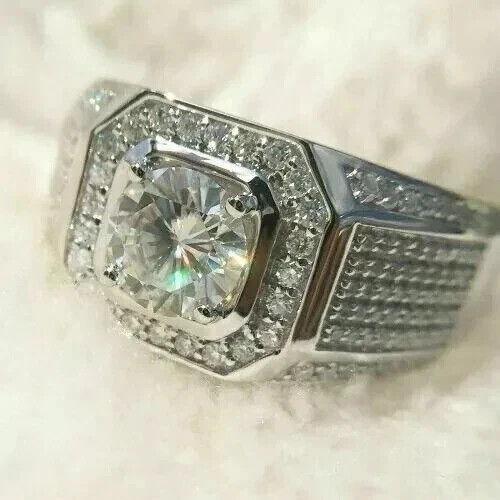 3.00Ct Round Cut Moissanite Mens Wedding Engagement Ring 14k White Gold Plated Customization: Want to add your personal touch to this piece? Contact us and we will create one just for you. Most customization requests include: 1) Ring Resizing 2) Redesign 3) Metal Change (Silver/10K Gold / 14K Gold /18K Gold) 4) Metal Color Change (White/Yellow/Rose/Black) 5) Color Stones (White Topaz, Pink Sapphire, etc) 6) Engraving (Name or any message - no of characters subject to size of jewelry) 7) Anything under the sun that catches your fancy, we will give it a try :) Payment: We accept payment via PayPal only. You can also pay using your credit card, via paypal, by using paypal as a guest. Payment is required within 3 days of the sale of an item. Shipping: International shipments are usually delivered within 2 to 6 weeks, depending on the time taken to clear customs. We are not responsible for any delays due to customs. Please note that all countries charge a duty on imported goods. A customs clearing charge is also imposed in many countries. We are not responsible for the amount of duty or any other related charges. Terms & Sale: We want to ensure that you are completely satisfied with your purchase. If not, then please let us know before leaving any feedback and allow us to work with you to completely resolve any issues that you might be facing. You can return the item for a full refund LESS shipping, within 14 days of item(s) receipt date. There is no restocking fee. 100% Satisfaction Guaranteed. All returns must reach us within 14 days after the item was delivered to you the item must be in the original condition and with the original tags attached. Contact Us: You can contact us by clicking on 'ask seller a question'