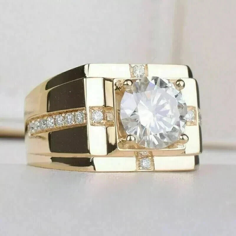 3.00Ct Round Cut Moissanite Solitaire Men's Wedding Ring 14k Yellow Gold Plated Customization: Want to add your personal touch to this piece? Contact us and we will create one just for you. Most customization requests include: 1) Ring Resizing 2) Redesign 3) Metal Change (Silver/10K Gold / 14K Gold /18K Gold) 4) Metal Color Change (White/Yellow/Rose/Black) 5) Color Stones (White Topaz, Pink Sapphire, etc) 6) Engraving (Name or any message - no of characters subject to size of jewelry) 7) Anything under the sun that catches your fancy, we will give it a try :) Payment: We accept payment via PayPal only. You can also pay using your credit card, via paypal, by using paypal as a guest. Payment is required within 3 days of the sale of an item. Shipping: International shipments are usually delivered within 2 to 6 weeks, depending on the time taken to clear customs. We are not responsible for any delays due to customs. Please note that all countries charge a duty on imported goods. A customs clearing charge is also imposed in many countries. We are not responsible for the amount of duty or any other related charges. Terms & Sale: We want to ensure that you are completely satisfied with your purchase. If not, then please let us know before leaving any feedback and allow us to work with you to completely resolve any issues that you might be facing. You can return the item for a full refund LESS shipping, within 14 days of item(s) receipt date. There is no restocking fee. 100% Satisfaction Guaranteed. All returns must reach us within 14 days after the item was delivered to you the item must be in the original condition and with the original tags attached. Contact Us: You can contact us by clicking on 'ask seller a question'
