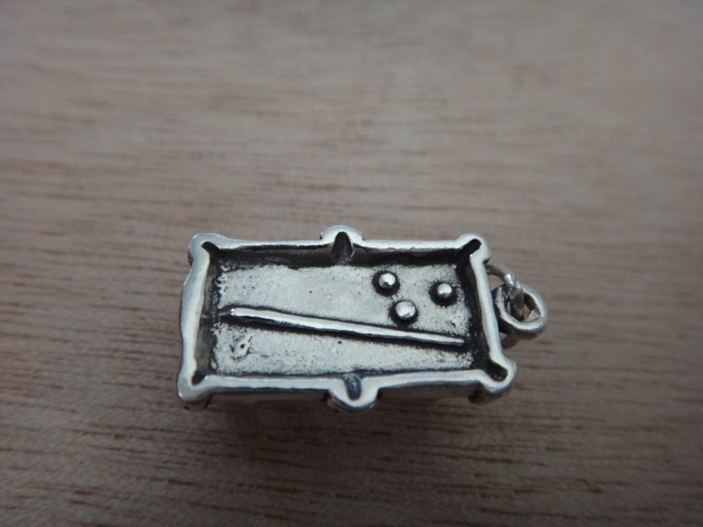 3D 18x11mm Billiard Pool Table with Pool Sticks & ball Sterling Silver Charm I have hundreds of sports charms for sale in my ebay store also! I also have volleyball, soccer, tennis, baseball, dance, cheerleading, swimming, ballet, tap, skating, skiing, water polo, wrestling, football, karate, hockey, lacross, golf, running, bowling, skating boarding and others I can't think of right now.