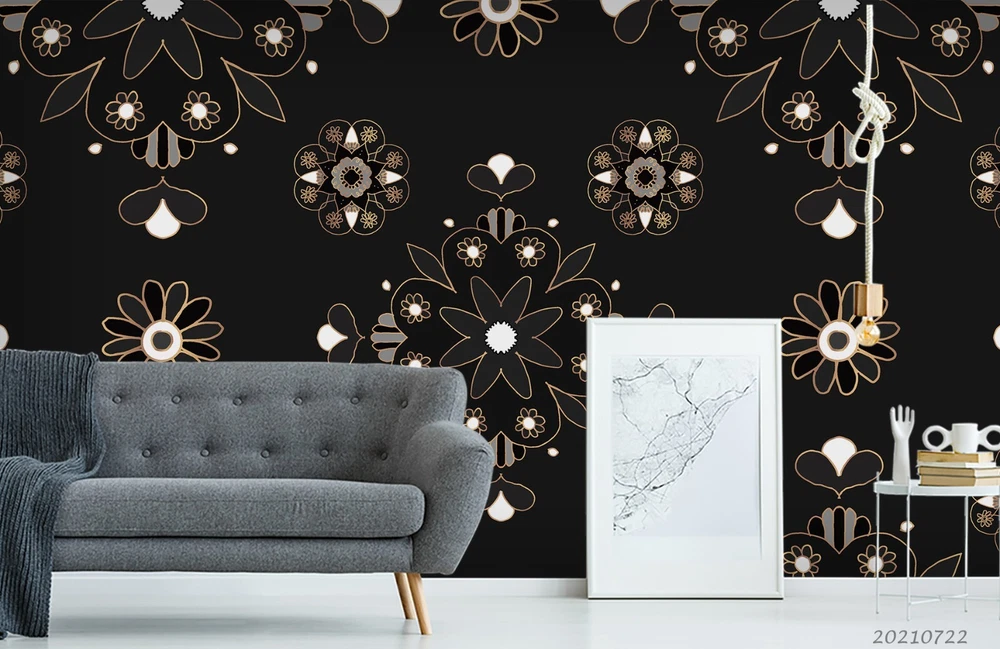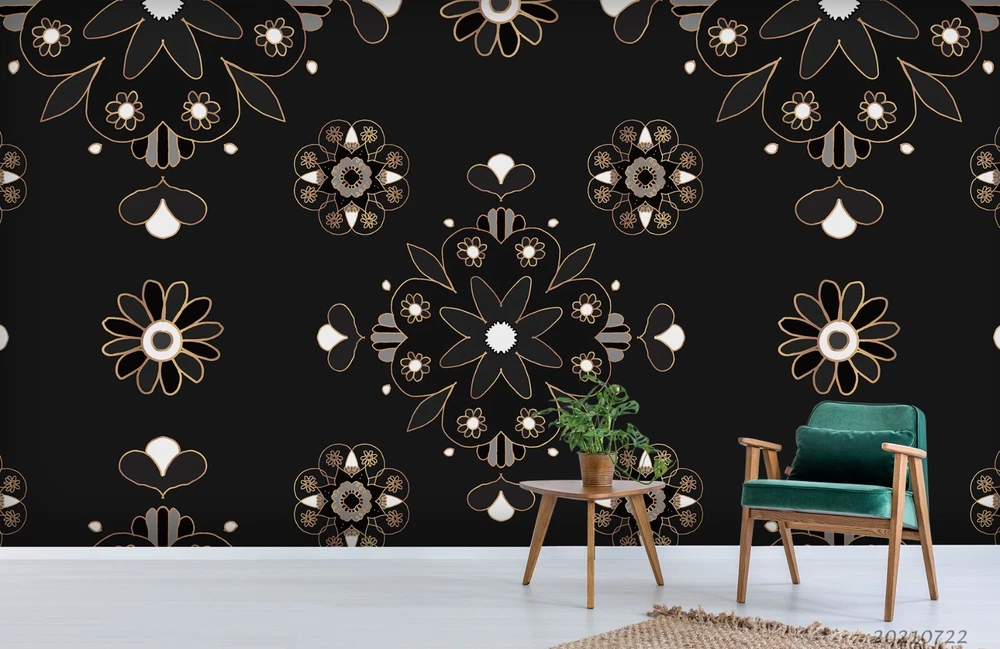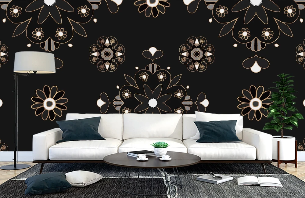 3D Black Floral Pattern Wall Murals Wallpaper Murals Wall Sticker