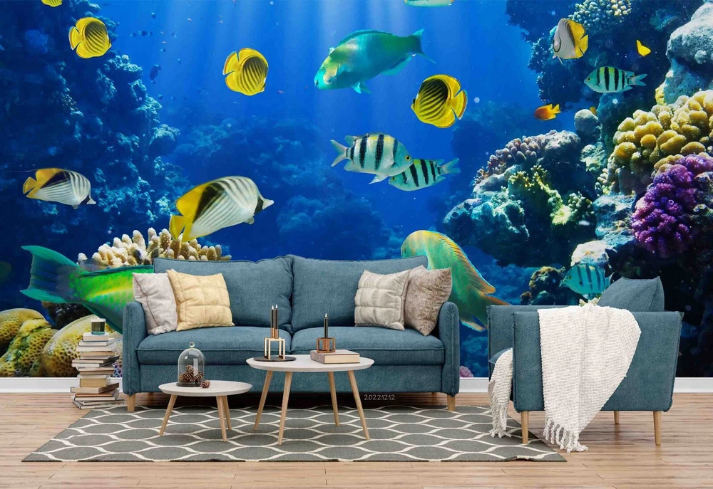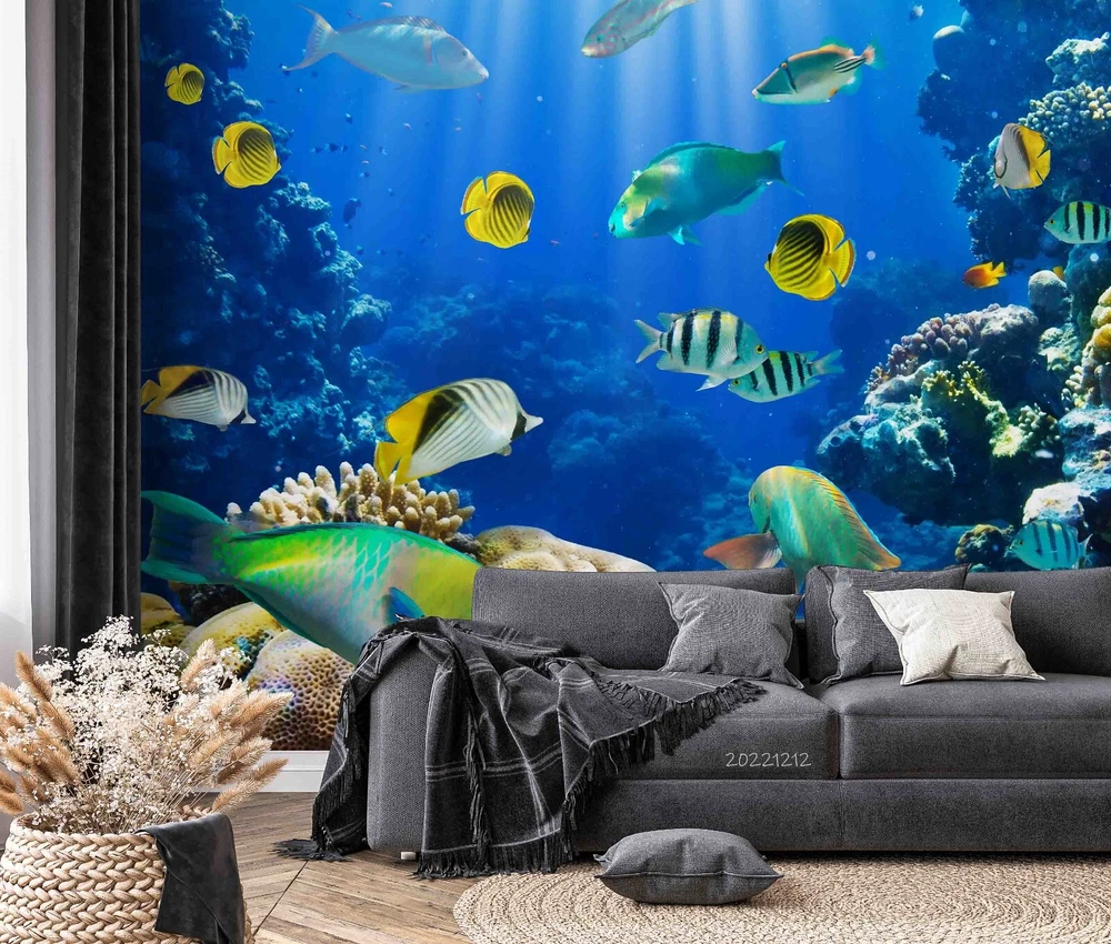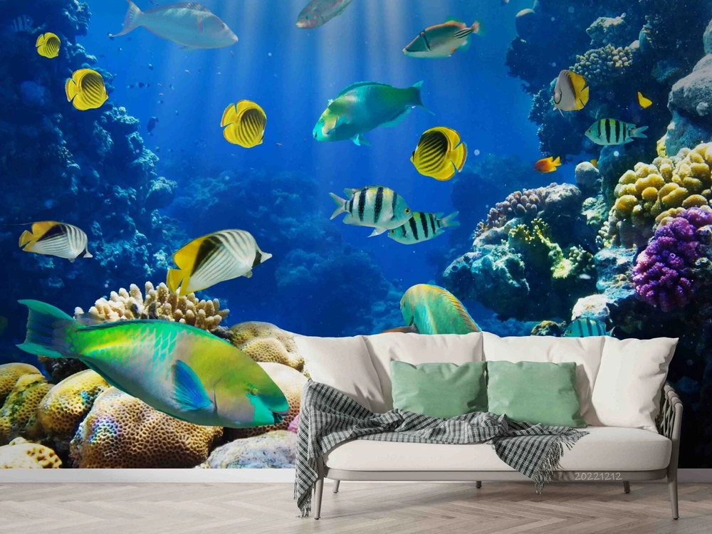 3D Blue Underwater World Fish Wall Murals Wallpaper Murals Wall Sticker