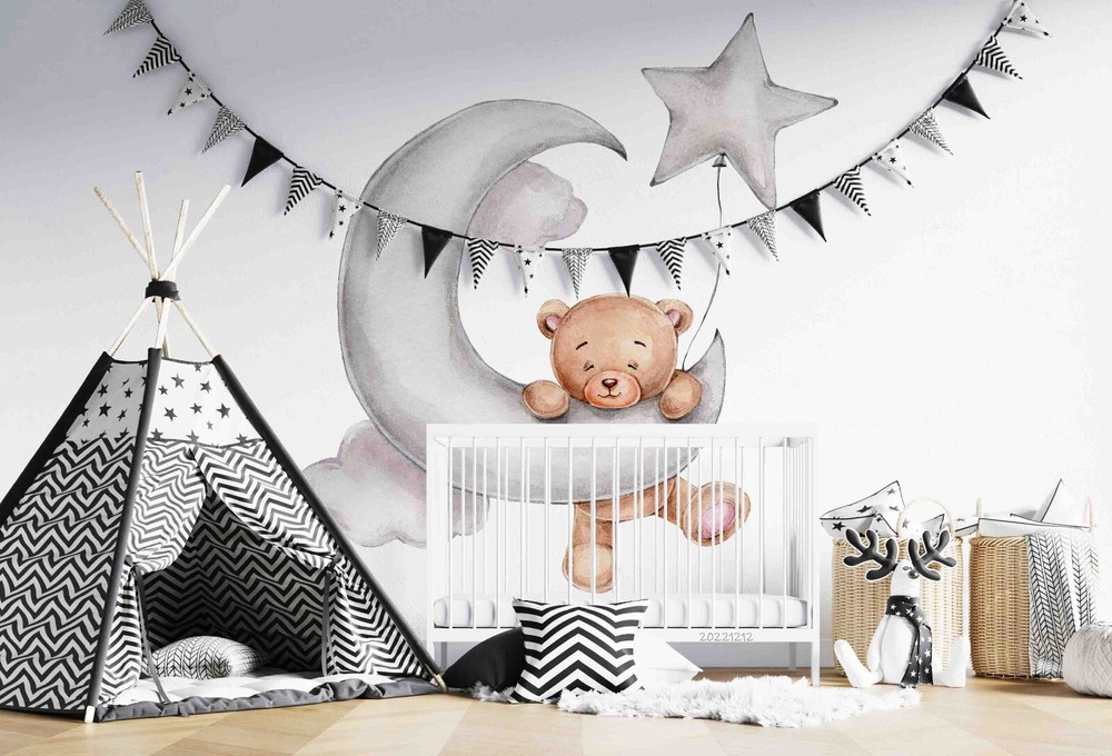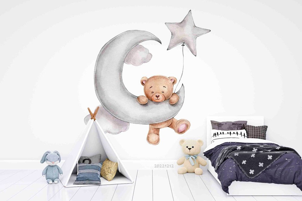 3D Cartoon Animal Bear Cloud Kids Wall Murals Wallpaper Murals Wall Sticker