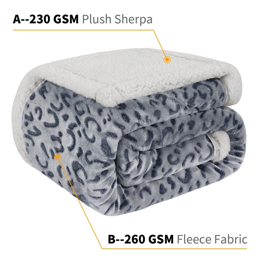 Sherpa Fleece Throw Blanket for Couch Fuzzy 3D Cheetah Blanket Thick Warm Reversible Cozy Comfy Super Soft Leopard Blanket for Bed Sofa 490GSM - Navy Leopard,50x60In ❤SOFT AND WARM BLANKET - Our elegantly high-end designed blanket features 260 GSM Flannel and 230 GSM Sherpa. And it is made of 100% hypoallergenic microfiber fabric and provides fading resistance to cotton blankets-this is not inclined to come over time, like cotton, small elasticity to maintain its shape saves time and quick-drying and anti-wrinkle blankets. Compared with ordinary cotton blankets, sherpa bed blankets bring more breathable and lighter feelings, keeping your body warm. ❤PERFECT GIFT - This soft fleece blanket is the perfect gift for family and friends. It can be used as a sofa blanket, travel, camping blanket, and bed blanket. Our colors were carefully selected to make a rich and soothing accent to any room decor. Likewise, this blanket is a birthday gift for women/men/friends/Valentine's Day/Mother/Father's Day/Christmas/New Year. On their birthdays or other festivals, give them a soft blanket as a gift, which delivers happiness and endless love. ❤MULTIFUNCTIONAL BLANKET - Perfect for indoor and outdoor use, providing year-round warmth. No matter where life takes you, enjoy the tenderness and warmth you deserve. When you doze off, watch TV on the sofa, and enjoy leisurely camping and picnics, there will be no colder or dampness. For microfiber. Super comfortable, super plush warm throw provides an elegant high-end appearance. ❤EASY TO CARE - Machine washable in cold water only, on a gentle or delicate cycle. Color will not fade, and the fabric will not pill or shed even after multiple wash cycles and endless use. ❤SATISFACTORY SERVICE - Throw blankets for the couch are the perfect gifts for anyone you love. If you are not completely satisfied with your purchase, please contact us. We will give you a satisfactory answer, and providing satisfactory service is our aim.