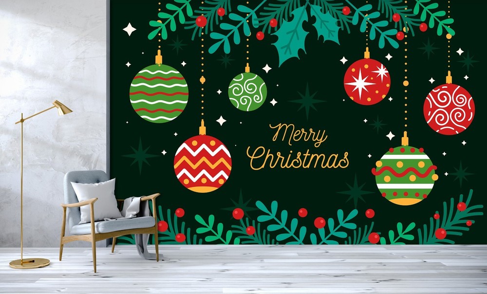 3D Christmas Balls ZHUA45584 Peel Stick Self-Adhesive Wall Mural Decal