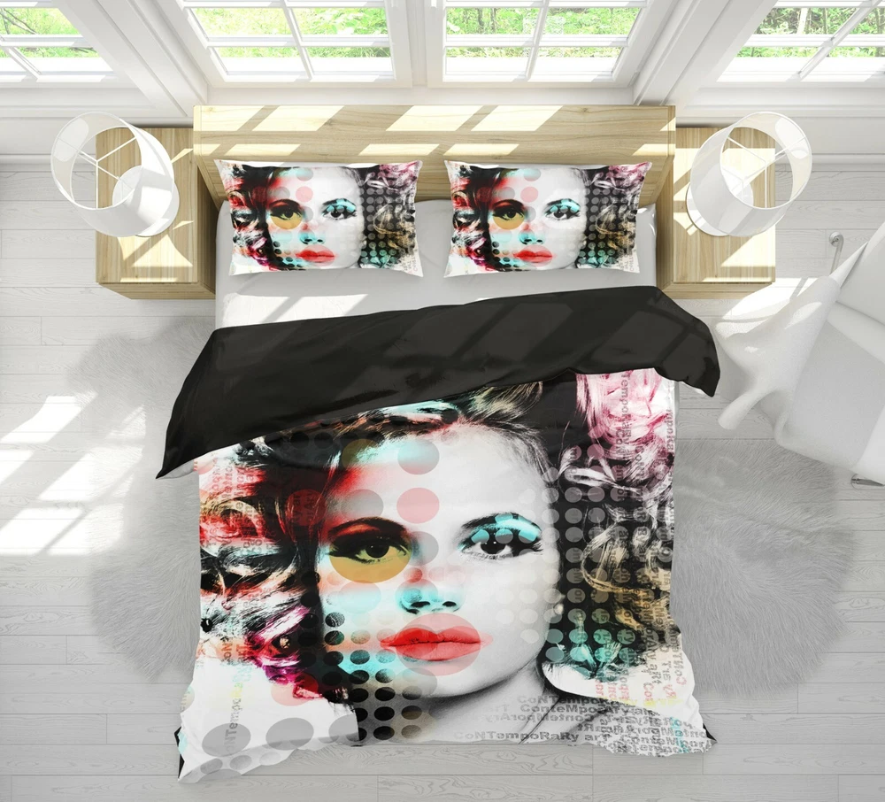 3D Color Dot Girl ZHUA244 Bed Pillowcases Quilt Duvet Cover Set Queen King Amy