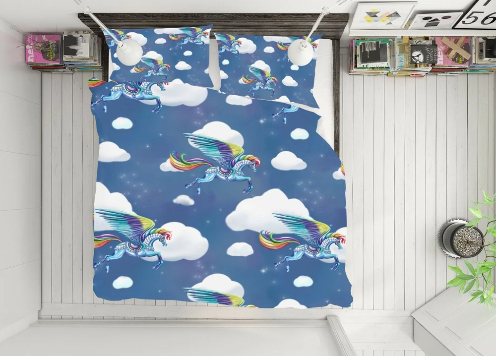 3D Color Unicorn A017 Bed Pillowcases Quilt Duvet Cover Rose Catherine Zoe