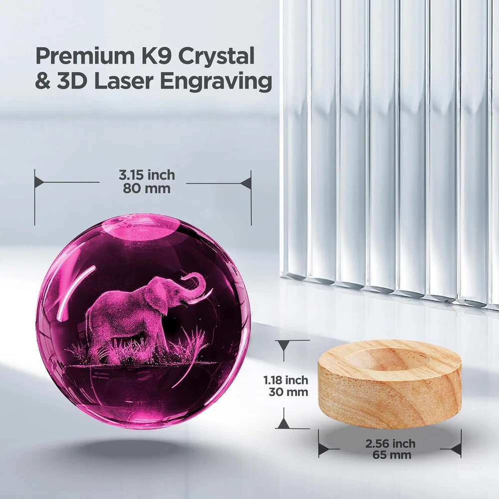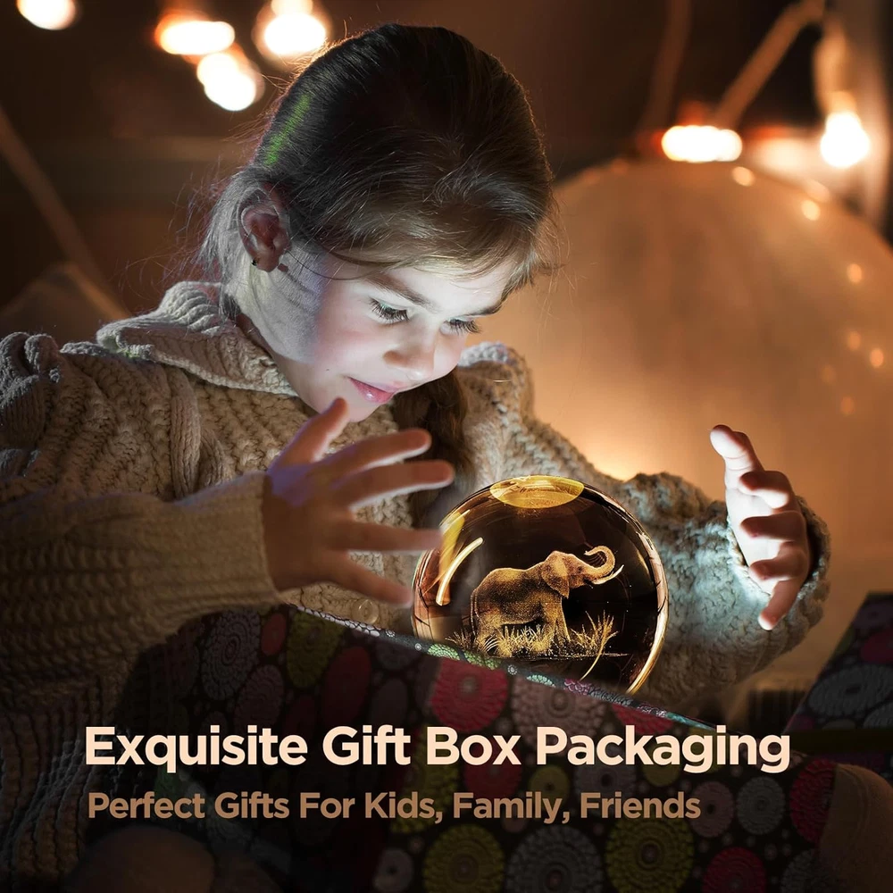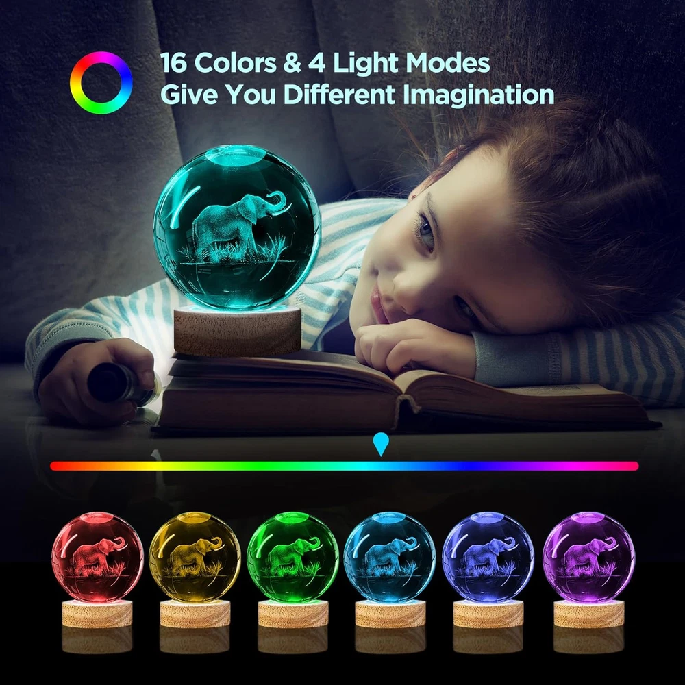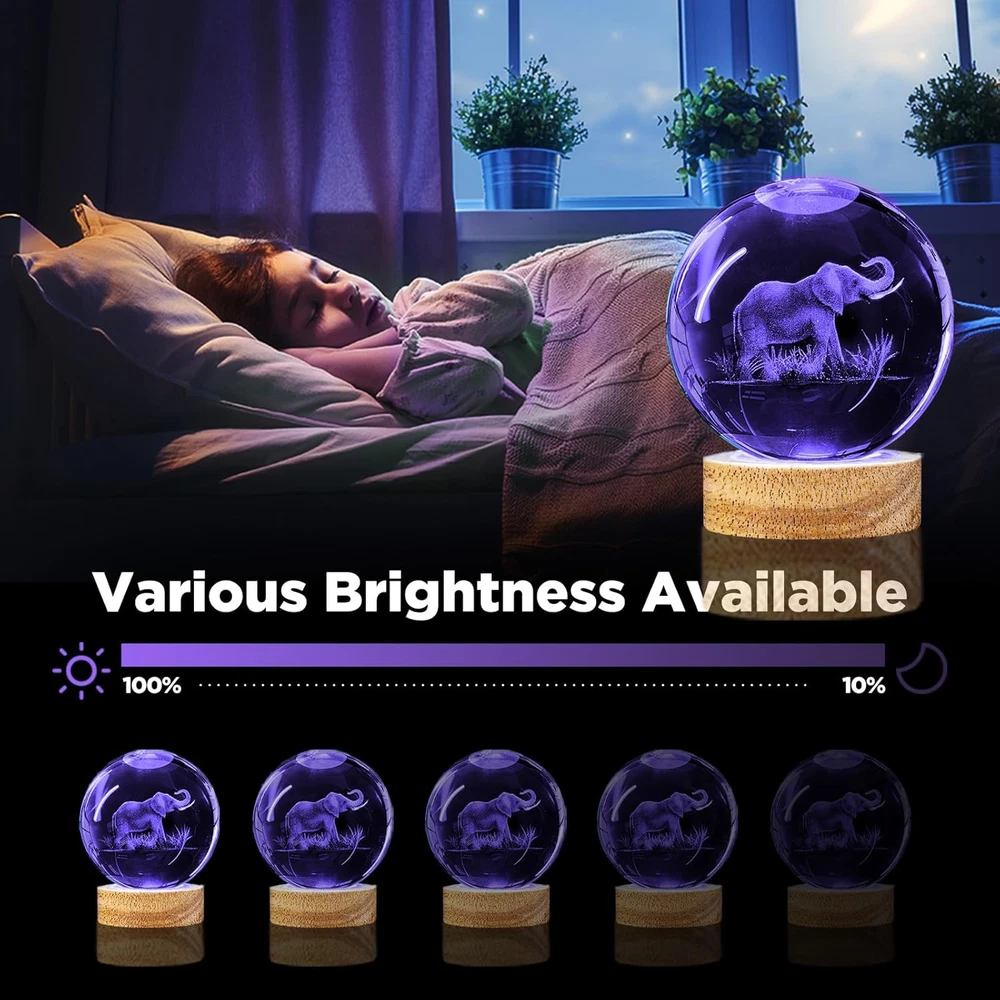 3D Elephant Crystal Ball Night Light Elephant Gifts for Women Upgraded 3.15