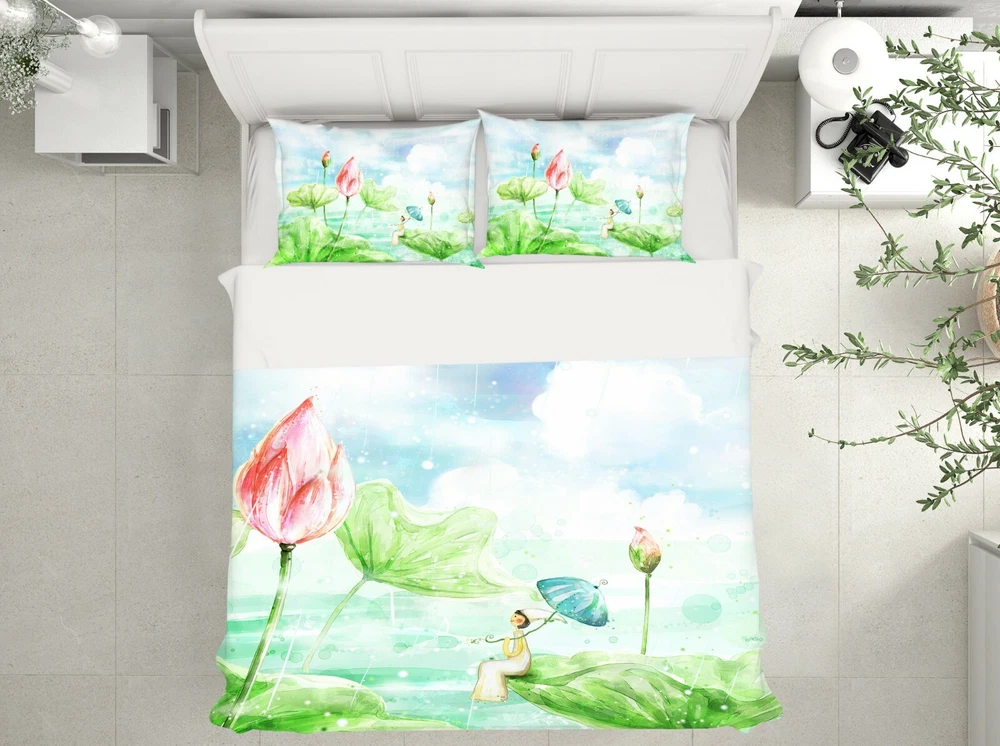 3D Fairy Lotus ZHUA3529 Bed Pillowcases Quilt Duvet Cover Set Queen King Zoe
