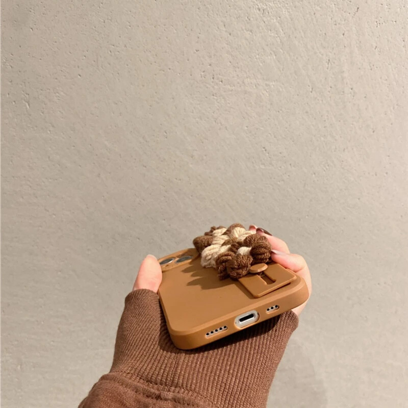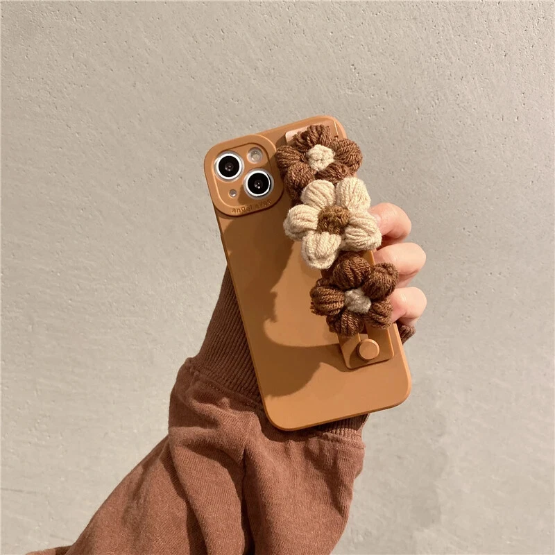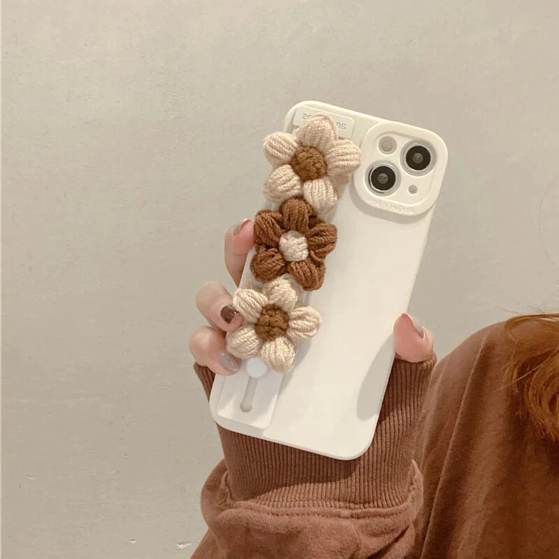 3D Flower Wrist Strap Holder Stand Soft Case for iPhone 11 12 13 14 ProMax