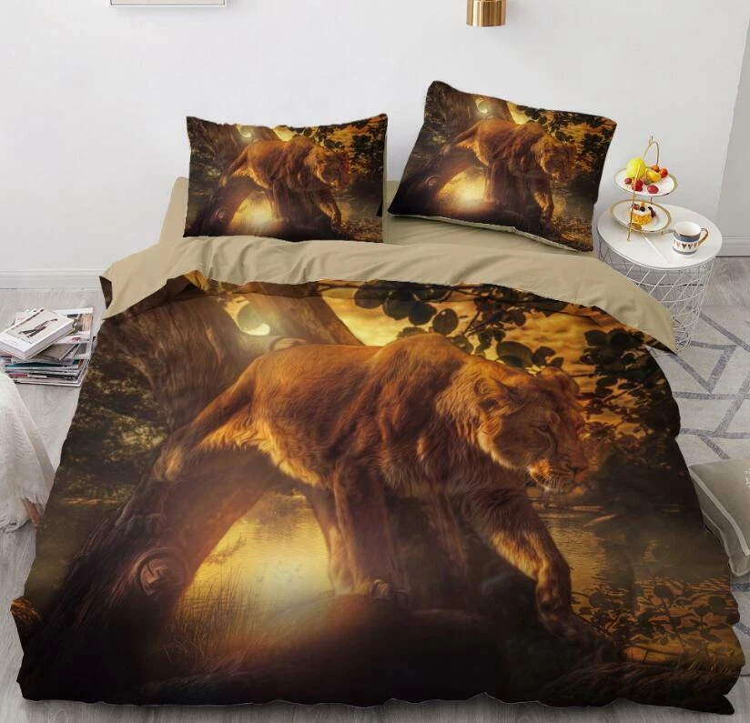 3D Forest Lion NAO5822 Bed Pillowcases Quilt Duvet Cover Set Queen King Fay