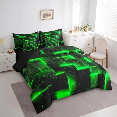 Menu 1. We require immediate payment. 2. We currently accept payment via eBay managed payments only. 3. Once payment is cleared, we will dispatch your shipment within 1-3 business days. Please refer to the "Shipping" tab for more information regarding shipping speed to your destination. 3D Geometric Bed in a Bag 7pcs Abstract Aesthetic Bedding Set, Black and Green Queen Size Comforter Set Glowing Futuristic Cubes Bedding Comforter Sets, Neon Grid Bed Set Product description What You Can Get: 7pcs bed in a bag includes a comforter 90"x90", a flat sheet 90"x102", a fitted sheet 60"x80"x16", two pillowcases 20"x30" and two throw pillow covers 18"x18" Vibrant Design: Elevate your bedroom decor with this modern 7 pieces comforter set featuring vibrant colored design Versatile Style: The bold yet versatile design seamlessly blends with various interior aesthetics Easy Care: The bedding sets are machine washable. For year round softness and prevent pilling up, wash it in the gentle cycle with cold water. Sun-dry or tumble dry in low when needed Elaborate Design: The comforter features "U-Shape" stitching which offers sophisticated look alongside simplicity and will also stable inside filling. The elastic deep pocket fitted sheet fits mattress max up to 16" deep. That can always keep non-slip no matter how you twist and turn in your bed PLEASE MESSAGE US IF YOU HAVE ANY OTHER QUESTIONS, AND MANY THANKS FOR READING ALL OF THIS. Copyright ©#. All Rights Reserved.