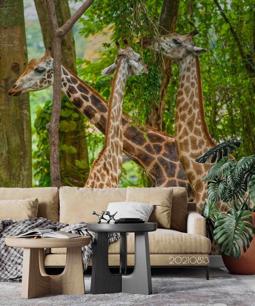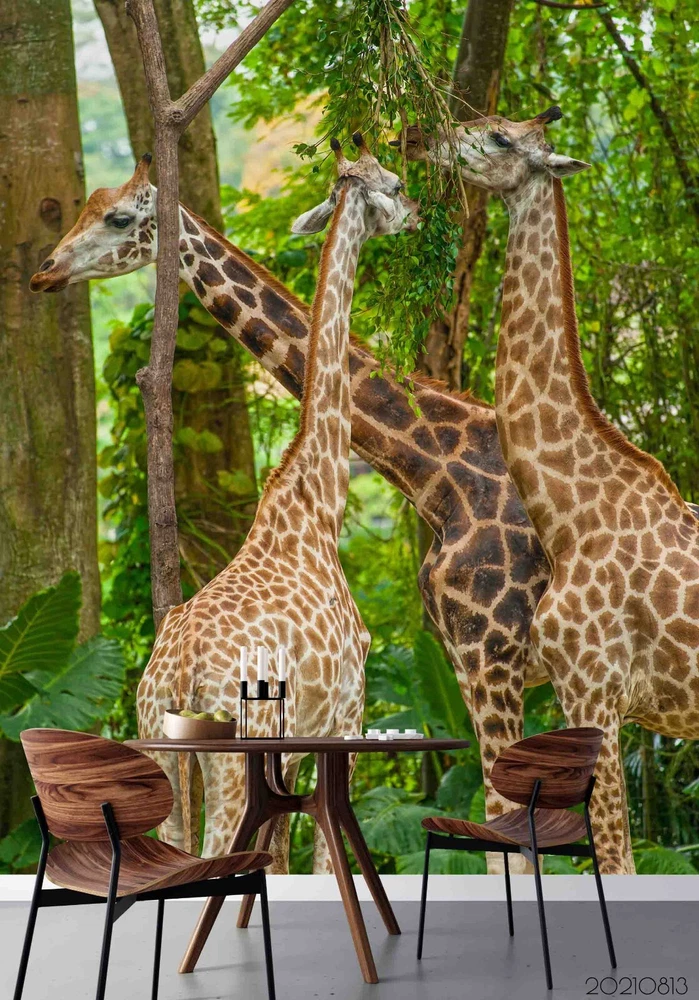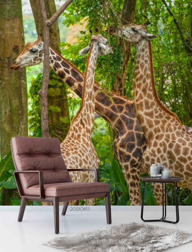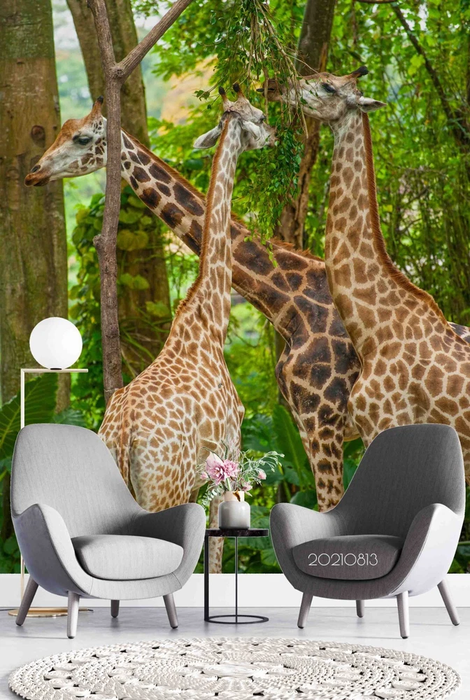 3D Green Forest Animal Giraffe Wall Murals Wallpaper Murals Wall Sticker