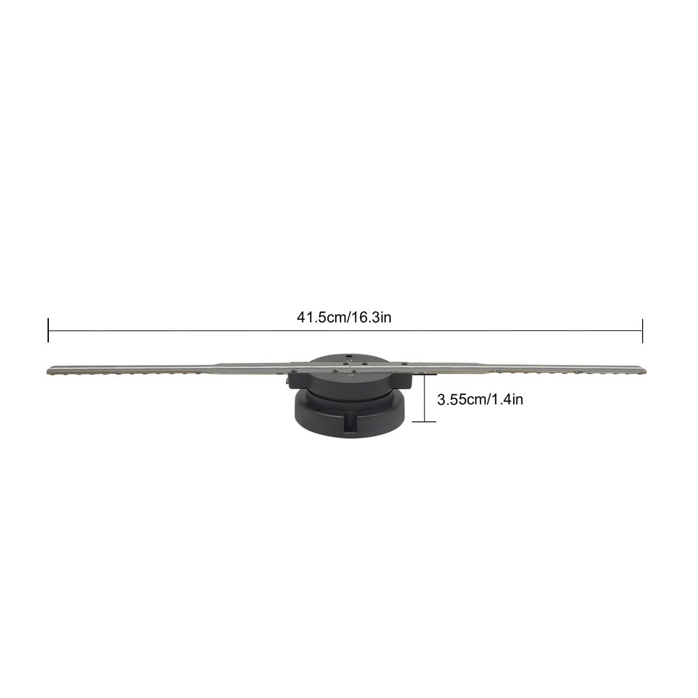3D Holographic Fan Hologram Fan Projector 1080P LED Light RGB Sign Bar + Control Description The Traditional Way of Advertising Communication Is Costly, Inefficient, and Environmental Pollution. This Holographic Fan Projector Will Break the Drawbacks of Traditional Advertising in a Special and Novel Form! It Attracts People's Eyes Through the 3D Animation Effect to Create More Business Value. Its High Brightness and Low Energy Consumption LED Beads Make It a Good Performance. It Will Be Your Ideal Choice! Specifications Color: Black Material: ABS+PC+Hardware High Definition: High Brightness RGB Mounting Type: Wall Mount Controller Type: Remote Control Definition: 1080P Adjustable Brightness: 20% /50% /100% Respectively Lifespan: >30000hours Resolution: 512*224P Power Rating: 15-25W LED Quantity: 224 Image Size: 43*43cm/16.9*16.9in Voltage: Adapter AC100-240V 50/60Hz Input: DC12V 3A Support Format: MP4/AVIRMVB/MOV/Gif/JPG/PNG Play Files: Bin Viewing Angle: 170° Product Length: 42cm/16.5in Product Thickness: 3cm/1.2in Base Diameter: 8cm/3in Gross Weight: 0.43kg/0.94lbs Net Weight: 0.37kg/0.81lbs Packing Size: 46.7*11*7.8cm/18.38*4.33*3.07in Package Included 1* 3D Holographic Fan Projector 1* Remote Contro l 1* Memory Card 1* Fixed Bracket 1* Power Adapter Other Accessories Required for Installation Key Features Sturdy and Durable: Made of High-quality ABS, PC, and Hardware, It Is Very Sturdy, Scratch-resistant, Anti-agin g, and Not Easy to Break, Which Provides Better Protection for the Light Source and Extends Its Service Life. Adjustable Design: Its Brightness and Angle Can Be Adjusted to Adapt to Different Environments and Solve the Problem of Inclined or Inverted Installation, So You Can Obtain Various Brightness, Clear and Complete Image Effects. Easy to Install: It Comes with a Complete Set of Mounting Accessories and Tools for Your Installation. You Can Easily Mount It on Any Wall to Save Space. Easy to Operate: All You Need to Do Is Import Your 3D Animations to a TF Card and Upload Them, and Insert It into the TF Card Slot. ( TF Card is Included) This Gives You the Flexibility to Choose Which Images You Want to Display, Which Is Very Easy and Practical. High-resolution Imaging : This High-resolution(512*224p) Holographic Fan Projector Will Display Everything You Upload in Realistic HD Holographic 3D. at the Same Time, 224 LEDs Ensure High-density Imaging, Making the Picture Even More Beautiful and Informative. Innovative Advertising Method: the AD Image Is Generated by a Rotating LED Fan Without Borders and Backgrounds, Making You Feel like It Appears Completely in the Air. It Is a Compelling Way to Share Advertising Content and Make Your Advertising and New Product Marketing Eye-catching. Easy to Carry: with Its Small Size and Lightweight(0.81lbs), You Can Easily Carry It to Any Location to Display Your Advertisement. Customer Service : We Aim to Provide Quality Products and Services. If You Have Any Problems, Please Feel Free to Contact Us. We Will Reply and Solve the Problem for You As Soon As Possible. Details LED Beads: It Uses High-quality LED Light Beads, with RGB Color Mode, Which Is High Brightness, High Color Reproduction, and Saturation, Allowing Clear Visibility Even Under Sunlight. Remote Control: It Is Configured with a Remote Control That Uses Infrared Sensing for Great Speed and Stability. You Can Remotely Turn on/off, Switch Screen Adjustment, Repeat Play Adjustment, and Brightness Adjustment, Which Is Very Convenient. Application It Can Be Used in Shops, Retail Chain Stores, Shopping Centers, Clubs, Bars, 4S Stores, Gas Stations, Subways, Airports, Elevator Advertisements, Exhibitions, Conferences, Celebrations, Entrance Ceremonies, Education, and Most Other Scenes to Display Product Details, Brand Signs, Signs, Holiday-themed Animation, Promotional Activities, Etc . Notes Please Do Not Touch the Fan Blade or Test the Battery When It Is Running. Please Note That the TF Card Is Included in the Package. Please Allow the Slight Color Difference Caused by the Shooting Light and 1-3cm Error Due to Manual Measurement, and Make Sure You Do Not Mind Before You Order. Payment Delivery details Terms of sales About us Contact us Payment We accept ebay payment 。 Fees such as import duties, taxes are not included in the item price or shipping costs. These charges are the buyer's responsibility. Delivery details Shipping: 2-9 working days to: USA Terms of sales We maintain high standards of excellence and strive for hundred percent customer satisfaction. Feedback is very important to us. We hope that you contact us immediately before you give neutral or negative feedback, so that we can address your concerns. It is impossible to address issues if we do not know about them! About us Your satis faction is our ultimate goal. We work hard to earn your trust and future business. Our certified technicians have tested each item before shipping. The unit comes with 1 year limited warranty on all manufacturing defects. a) If you receive a defective item, you may return it or ask for a discount. Please contact us within 14 days after you receive the package. b) What you returned must be intact and in its original packaging as re? u. Customer is responsible for shipping costs of the returned item. c) We will cover the cost of shipping back t with the shipping rate indicated in the registration page. We will send you a new unit or refund the full payment you paid. Thank you. Contact us Business Hour Business Hour: Monday To Friday: 8:30 AM to 5:00 PM (Beijing China time) Due to time zones, our reply to your questions may not be immediately. But within above working time, we will reply your email within 24 hours. If it's non-workdays, please kindly be patient and wait till Monday. Please contact us with ebay message. Please feel free to contact us if you have any questions. Monday To Friday: 8:30 AM to 5:00 PM (Beijing China time) Due to time zones, our reply to your questions may not be