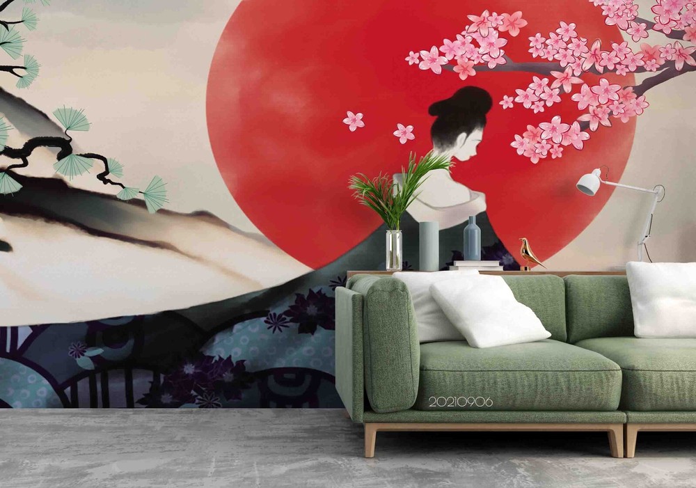 3D Japan Sakura Woman Wall Murals Wallpaper Murals Wall Sticker