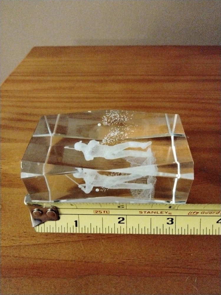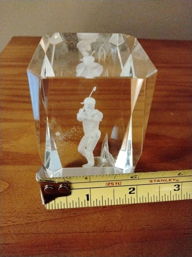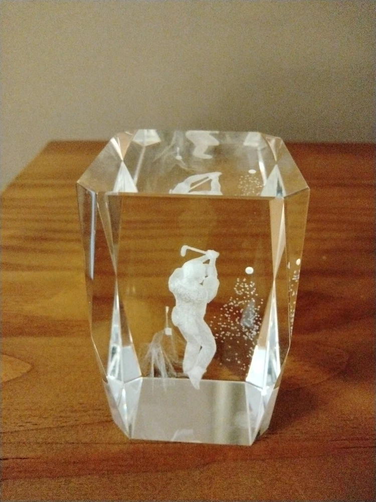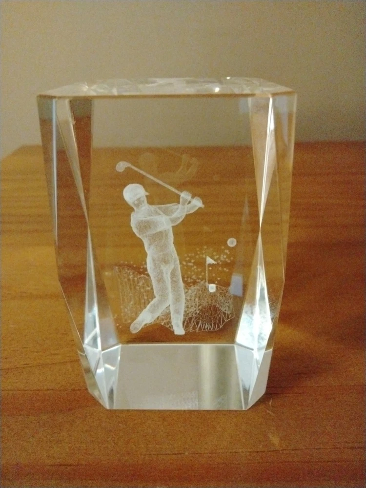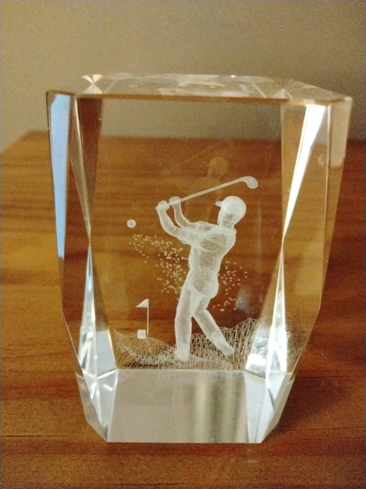 3D Laser Etched Crystal Cube Golfer Paperweight
