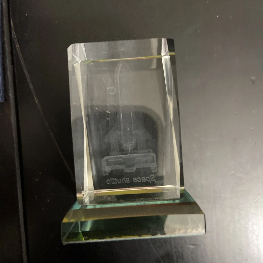 3D Laser Etched Crystal Glass Paperweight Souvenir Space Shuttle & State. Condition is Used. Shipped with USPS Ground Advantage.
