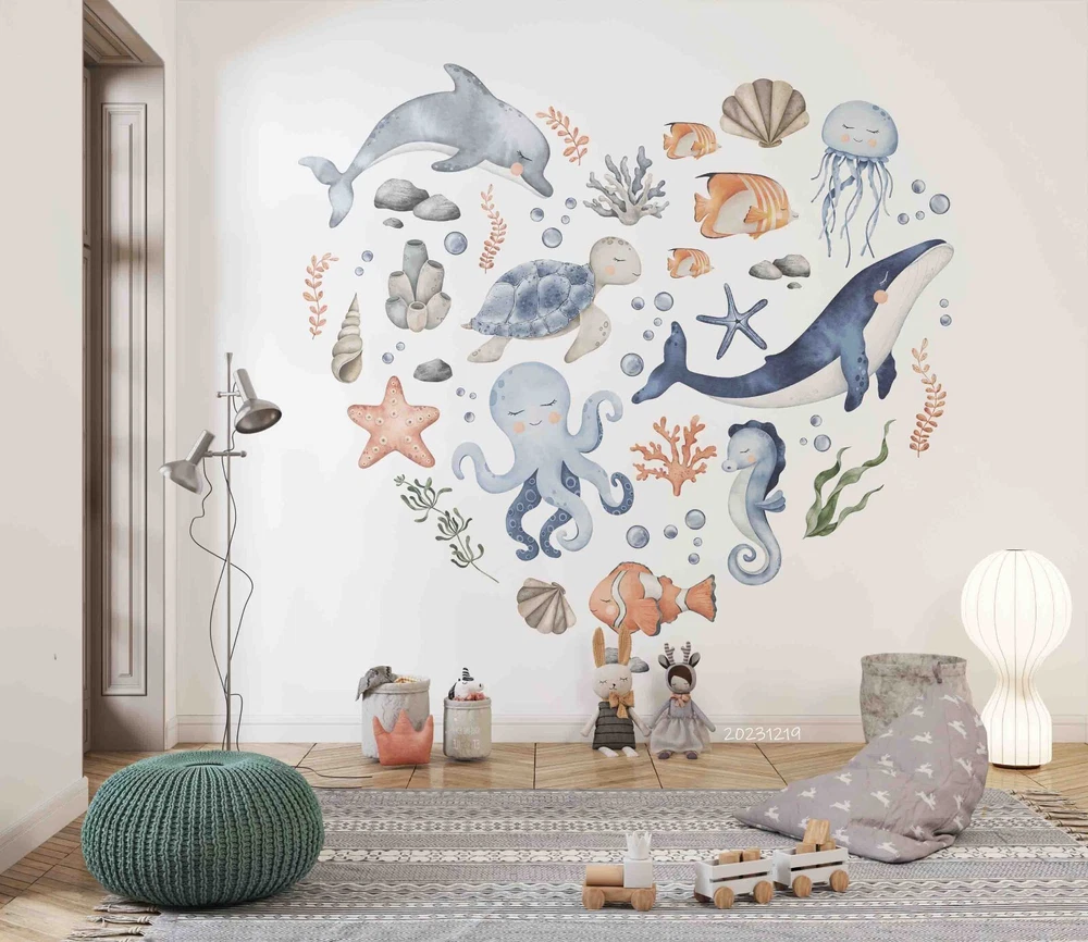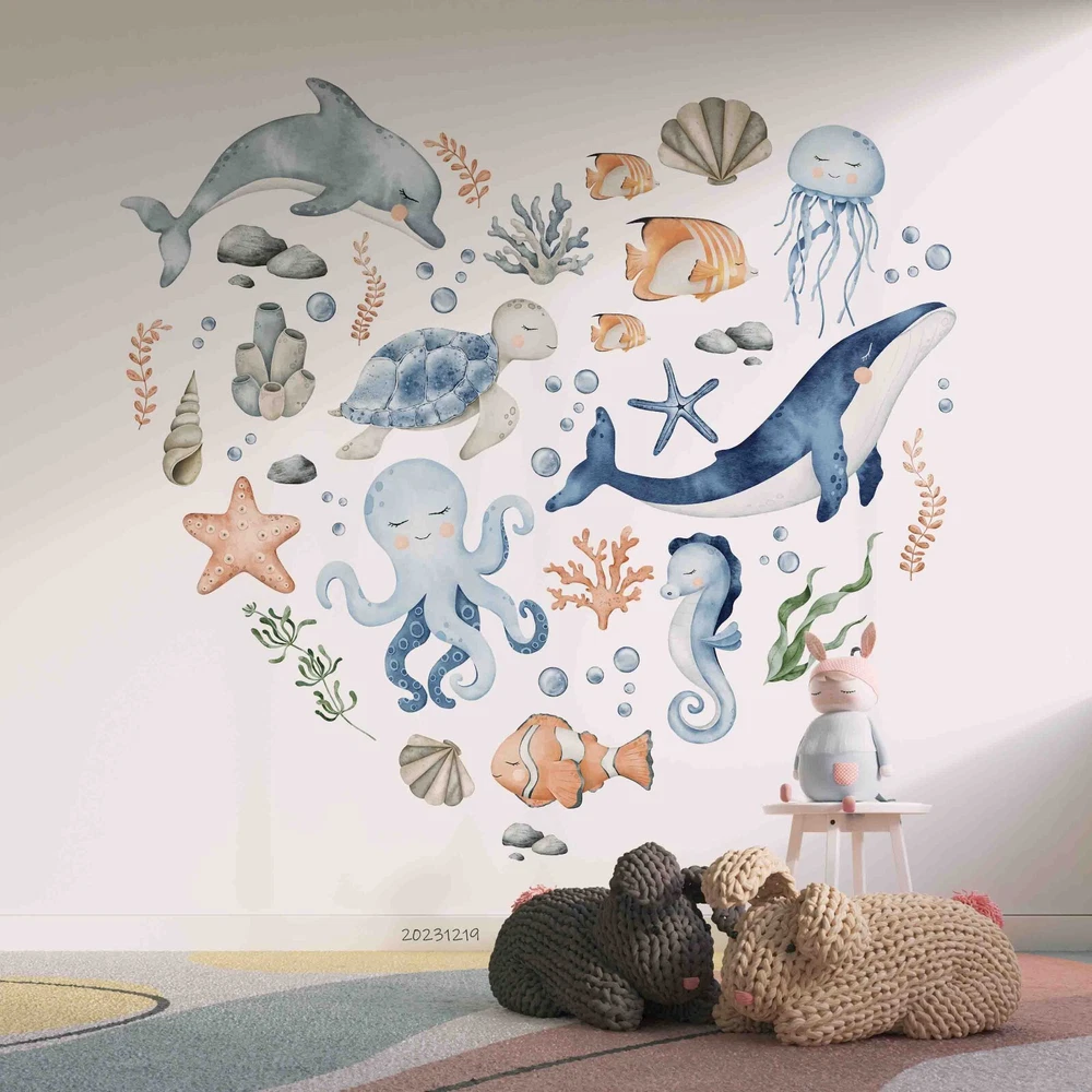 3D Marine Life Dolphin Whale Kids Wall Murals Wallpaper Murals Wall Sticker
