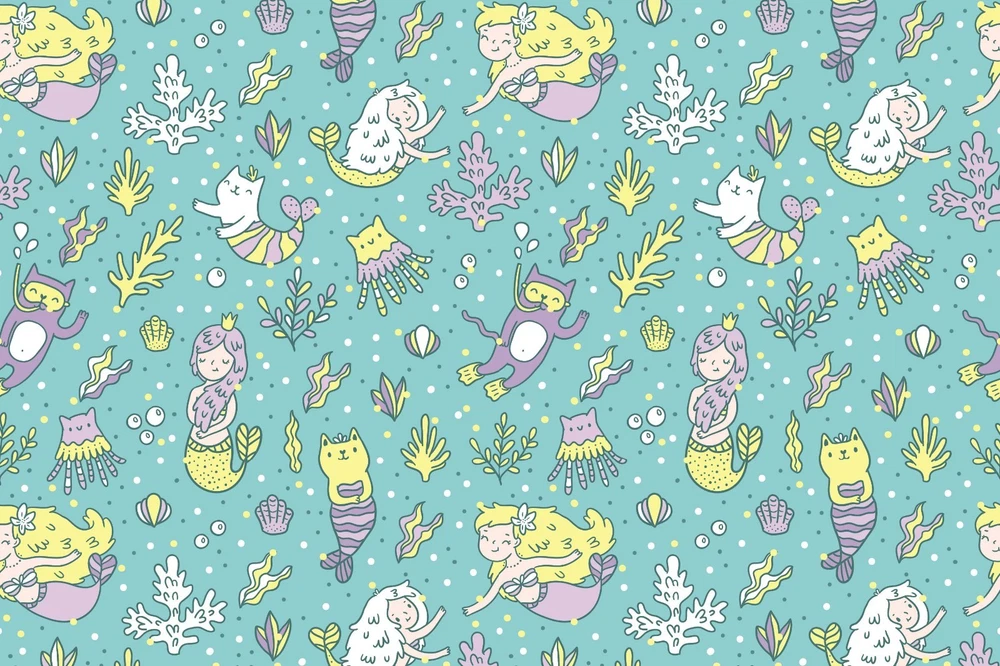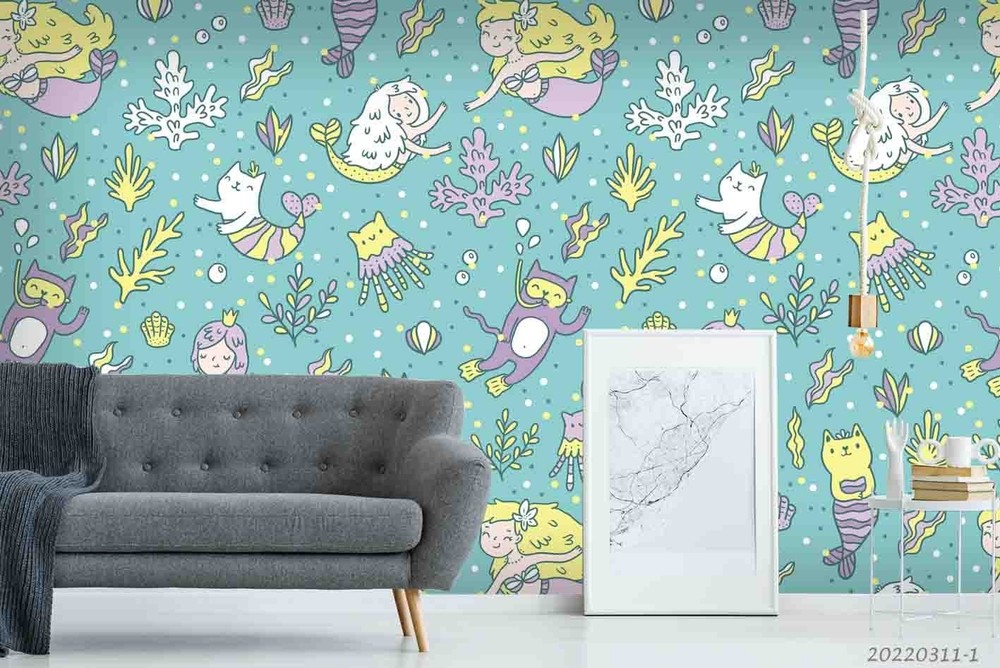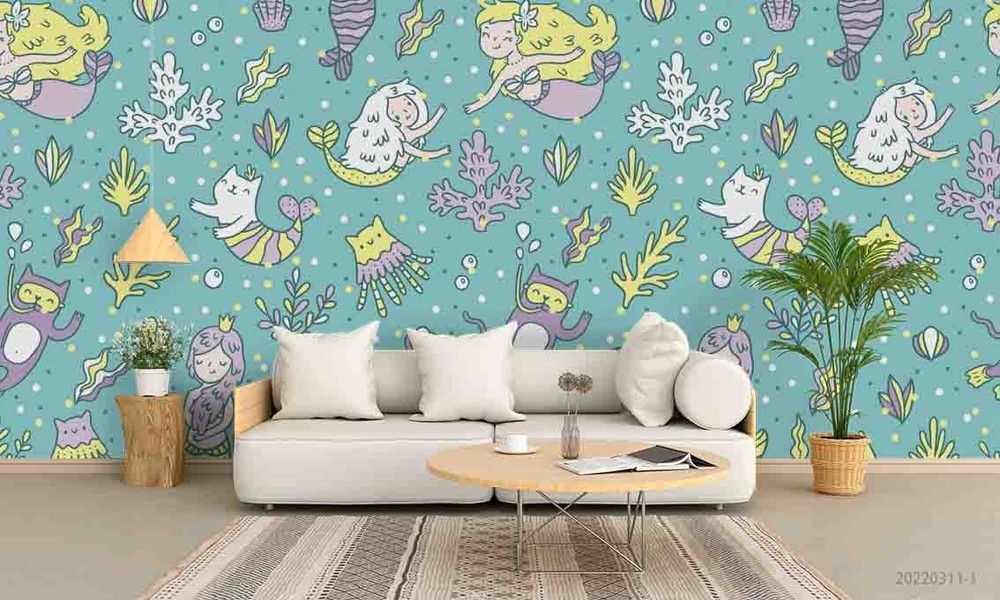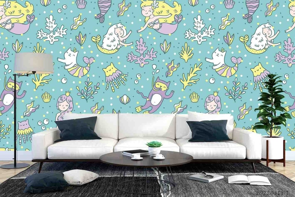 3D Mermaid Coral Shell Pattern Wall Murals Wallpaper Murals Wall Sticker