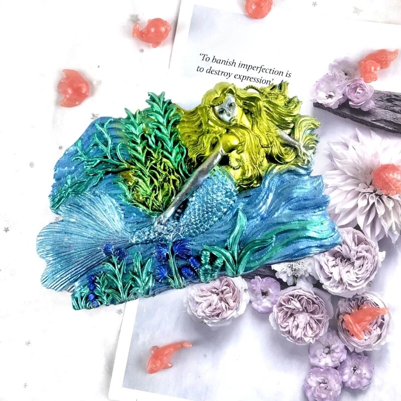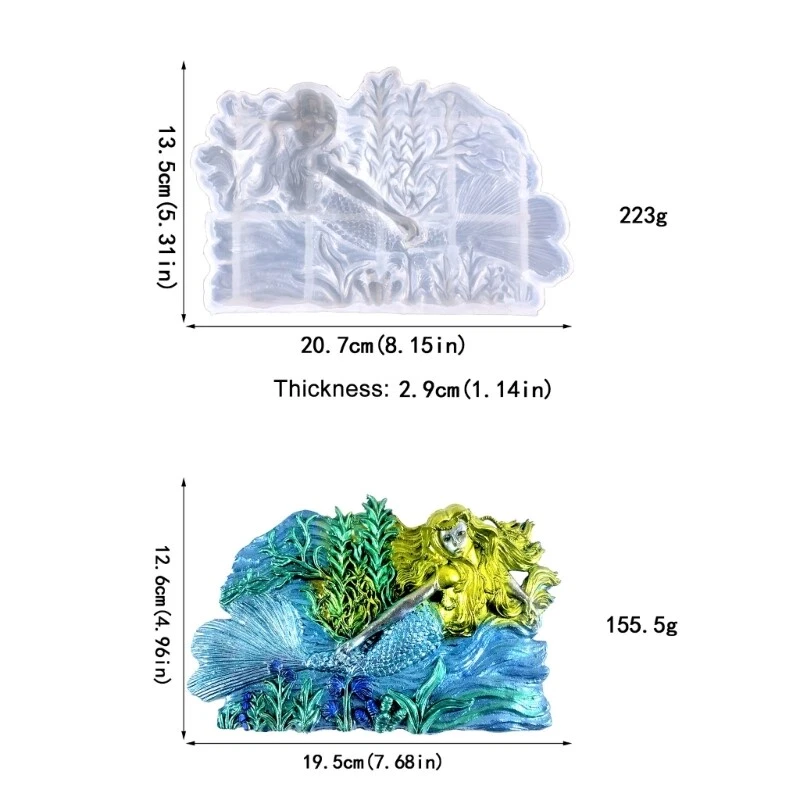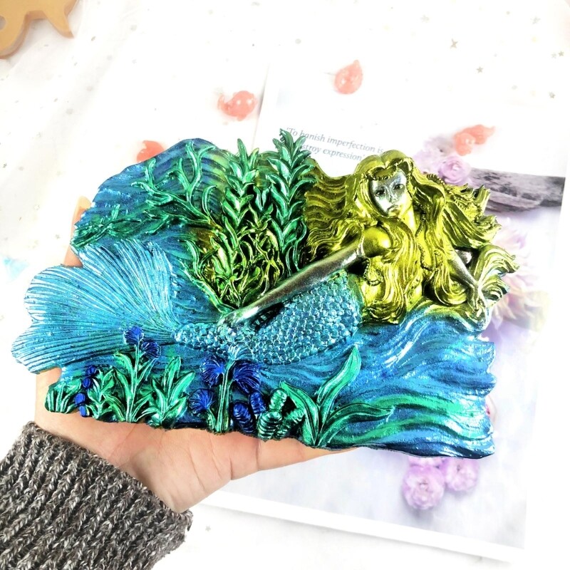 Features: Individuality decor,the finished sea-mermaid resin art perfect for interior and exterior decoration such as living room, bedroom, study, kitchen, dining room wall, can also be hung in your garden, courtyard, porch, deck, balcony or desktop ornaments Practical and sturdy material, the mermaid molds for resin make of silicone material with excellent elasticity, superior high tear strength, very flexibility and durability. silicone mold resin with glossy interior surfaces, smooth interior makes it easy to de-mold after it is fully cured. Suitable for many casting materials,the silicone molds for resin are compatible with many casting materials, especially good for epoxy resin, casting resin,add resin pigment, resin dye,and embed different kinds of embellishments or fillers,as well as used with the following casting materials such as wax, soap,gypsum Wonderful gift,the finished products can be sweet warm gift for friend ,family or yourself. Unique designs,mermaid and sea plants-resin mold,lifelike-grain,giving them real life feel! Specifications: Material:Silicone Package Includes: Piece Wall-Decor Mold note: Please allow 1-2cm errors due to manual measurement. Due to the difference betweeen different monitors,the picture may not reflect the actual color of the item.