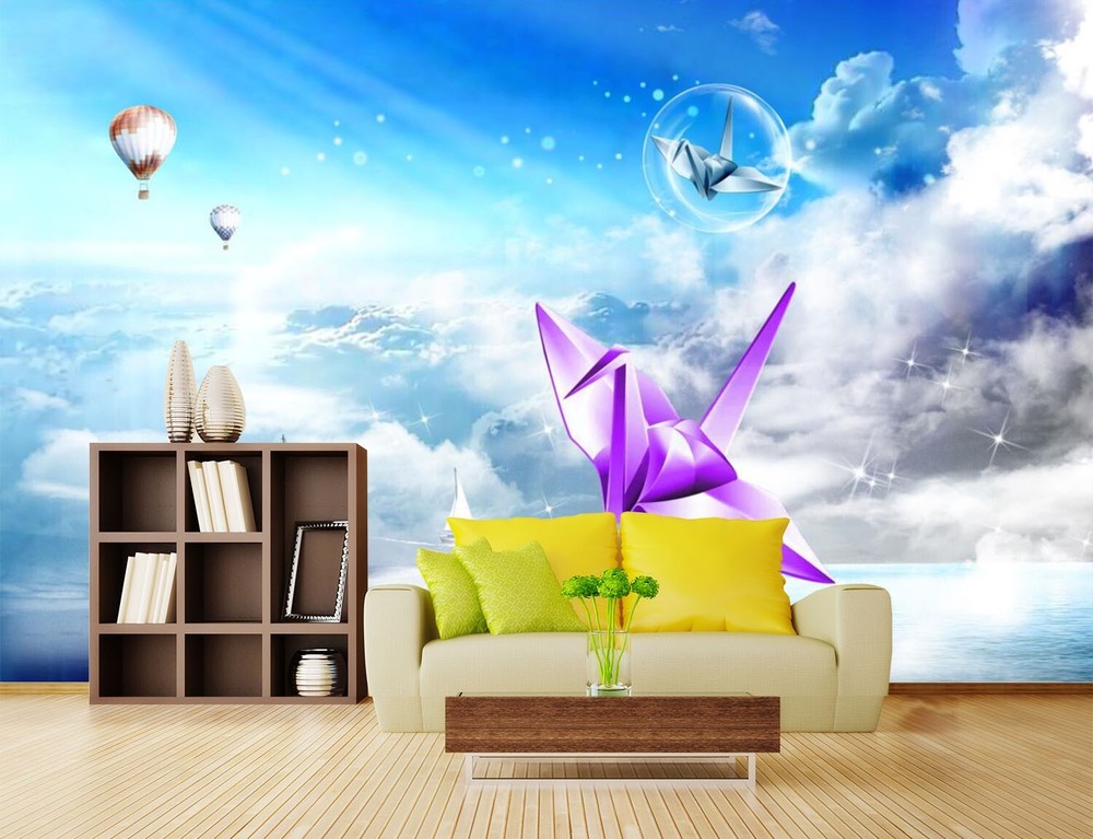 3D Origami Crane Peel and Stick Wallpaper Self-Adhesive Mural ZHUA5142