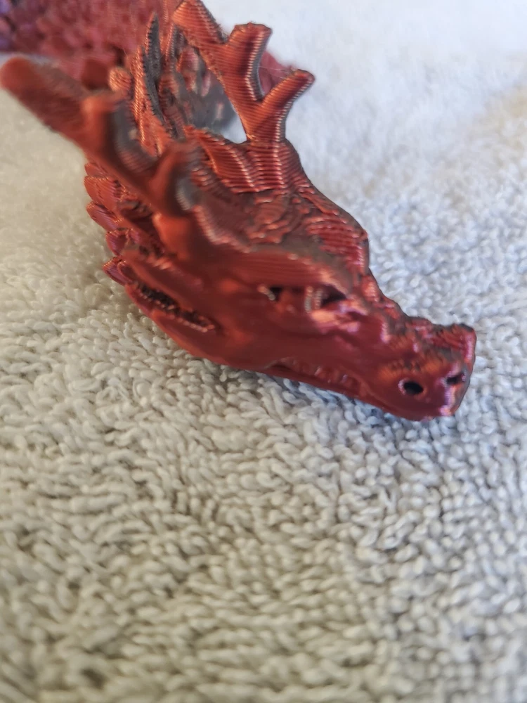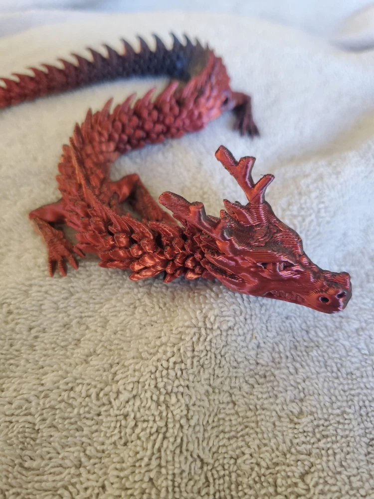 Introducing a stunning 3D printed articulated figurine of a red dragon, measuring 12 inches in length. This intricately designed toy is perfect for collectors and enthusiasts alike, with its unique design and attention to detail. The figurine is made from high-quality materials, ensuring durability and longevity. The green dragon figurine is ideal for display in any collection, and its articulated features allow for dynamic posing and play. Its color and design are sure to make it a standout piece in any toy collection. Whether you're a fan of snakes or just love collecting unique toys, this 3D printed dragon is a must-have.