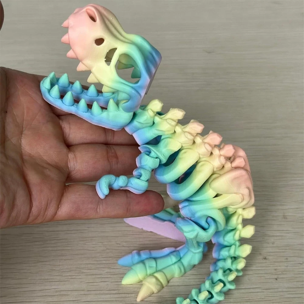 Product Description 3D Printed Dinosaur Skeleton T-Rex Dragon Figure, Colorful Dragon, 9.84 inch (25 cm) Dragon Fidget Sculpture, Home Decor Accents Statues