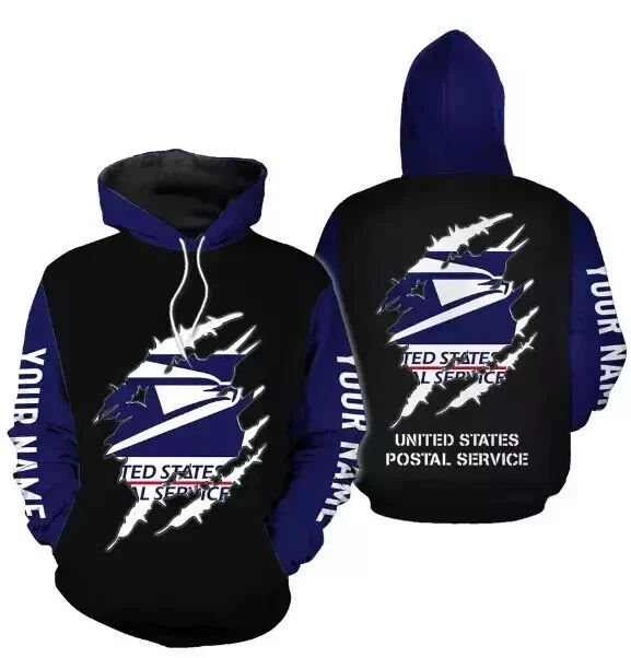 3D Printed Mens Postal Service Blu Hoodie Great new new