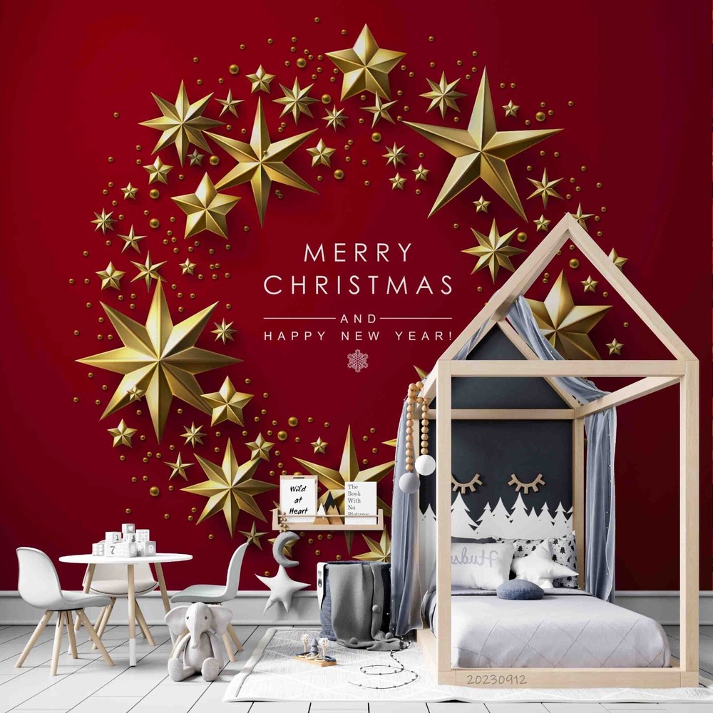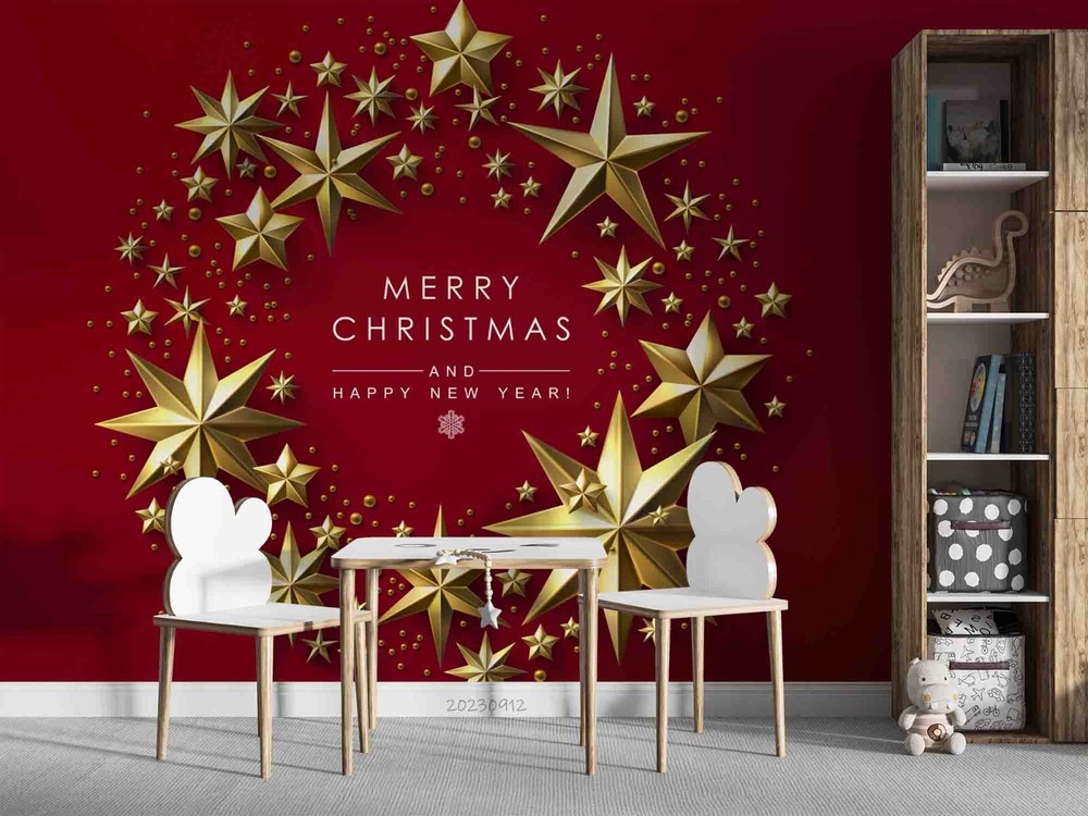 3D Red Christmas Star Decoration Wall Murals Wallpaper Murals Wall Sticker